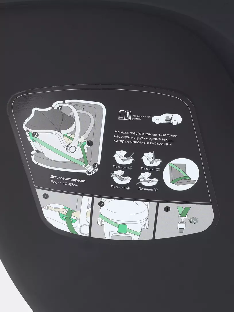 - 3-точечные ремни обеспечат полную безопасность, а плечевые накладки не дадут выскользнуть малышу при ударе
