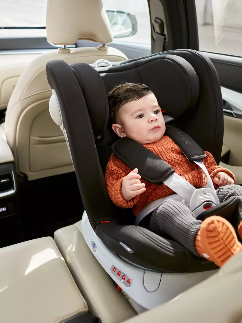 Универсальное автокресло последнего поколения, дополненное уникальной поворотной базой. Для вашего удобства: поверните зафиксированное автокресло на 90 градусов (чтобы оно располагалось боком); посадите/достаньте ребенка; установите кресло так, как требуется (по ходу/против хода движения).