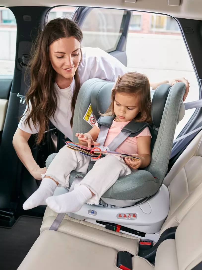 Универсальное автокресло последнего поколения, дополненное уникальной поворотной базой. Для вашего удобства: поверните зафиксированное автокресло на 90 градусов (чтобы оно располагалось боком); посадите/достаньте ребенка; установите кресло так, как требуется (по ходу/против хода движения).
