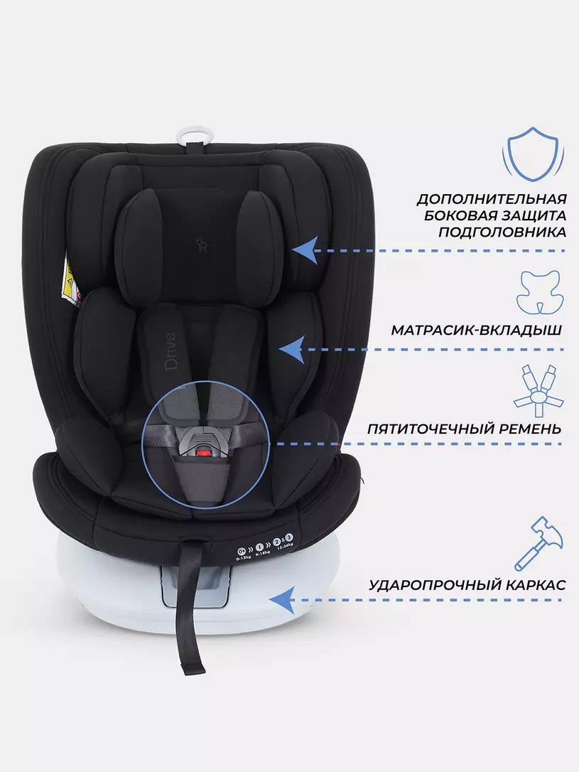 Детское автокресло RANT DRIVE 0/1/2/3 покорит вас: инновационной поворотной базой; креплением ISOFIX; якорным ремнем Top Tether; всеми регулировками, соответствующими группе; 5-точечным ремнем безопасности; мягкими вкладышами для комфорта; подушкой для выравнивания спального места для младенцев; роскошными чехлами с грязеотталкивающим покрытием.
