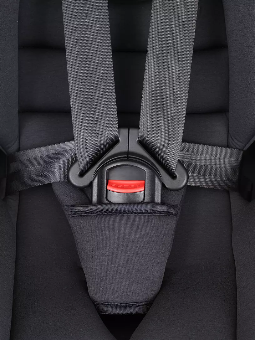 - 5-точечные ремни обеспечат полную безопасность, а плечевые накладки не дадут выскользнуть малышу при ударе