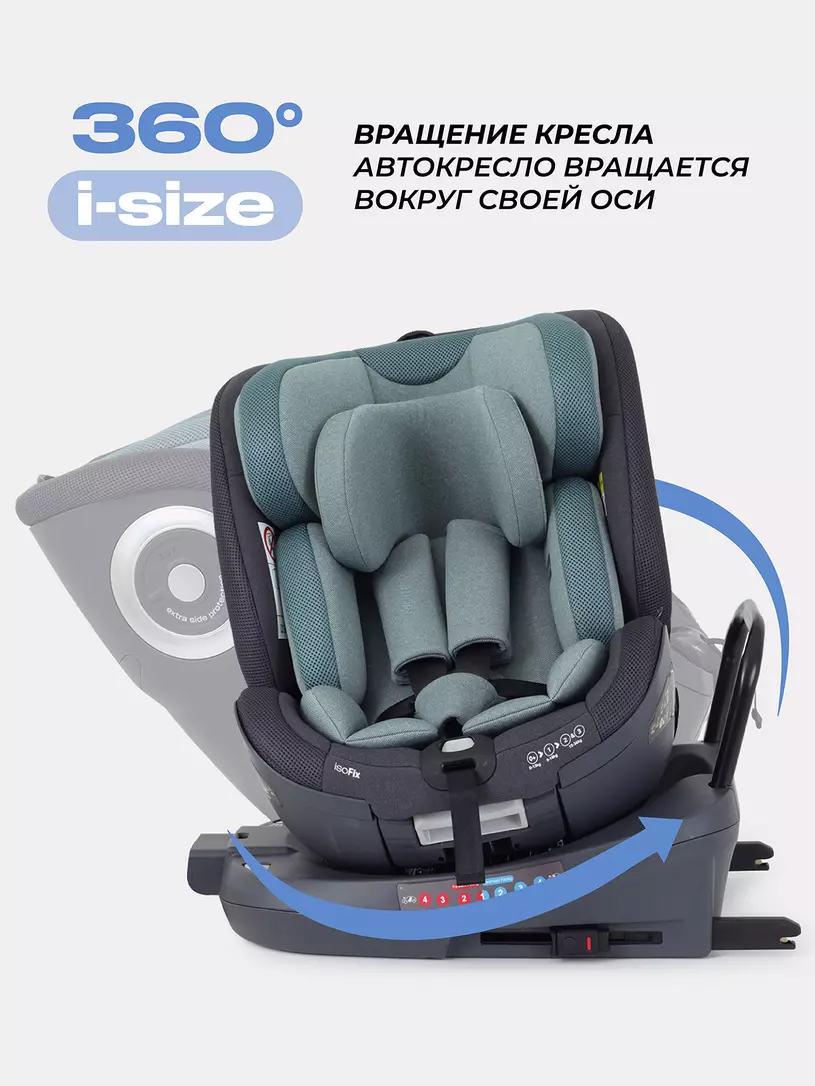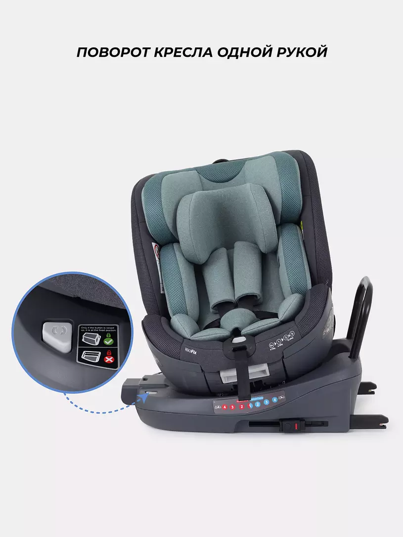 главная особенность автокресла в уникальной поворотной платформе, которую достаточно один раз надежно зафиксировать с помощью isofix и далее спокойно поворачивать на все 360 градусов. Таким образом, облегчается смена положения кресла - по ходу/против хода; значительно проще посадить/достать малыша, ведь кресло можно развернуть боком, а затем выставить либо по ходу, либо против хода движения; -