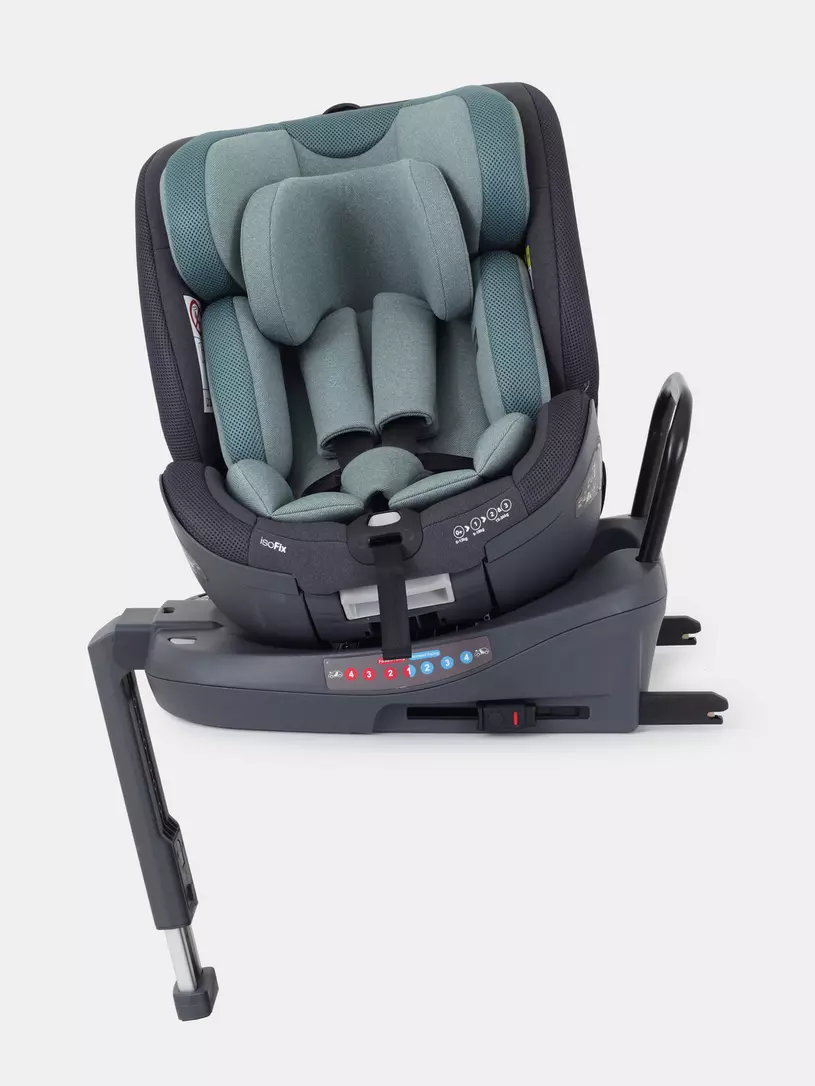 Универсальное автокресло с новым стандартом безопасности, поворотной базой, изофиксом и опорной ногой.
