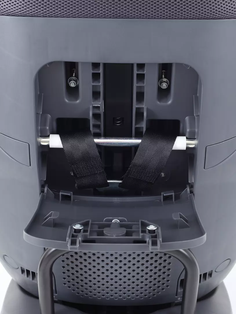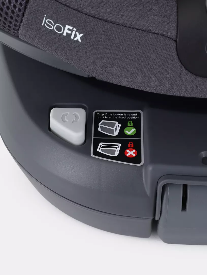 крепится с помощью системы isofix, которую можно выдвинуть для удобной фиксации в различных автомобилях; -