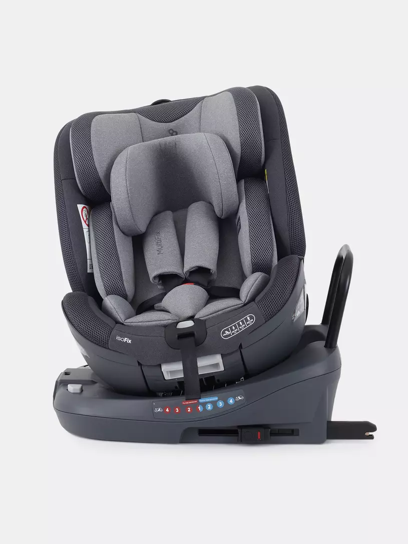 крепится с помощью системы isofix, которую можно выдвинуть для удобной фиксации в различных автомобилях; -