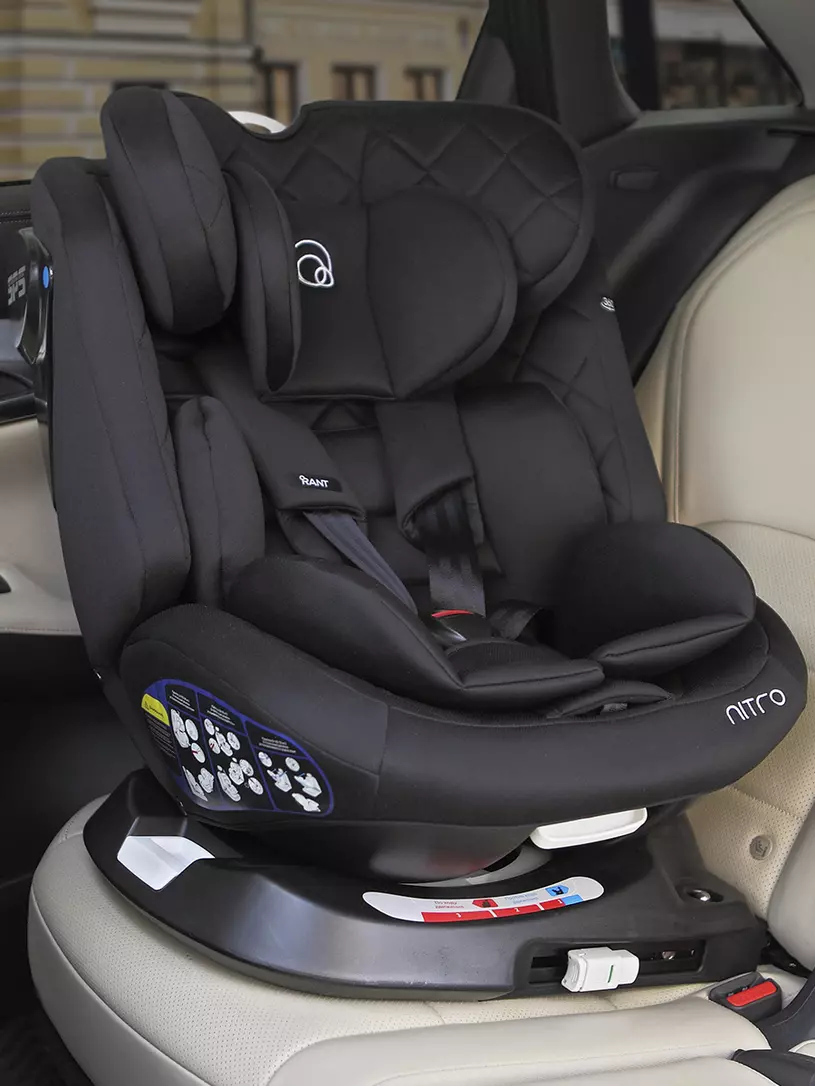 Детское автокресло RANT NITRO 0/1/2/3 покорит вас: инновационной поворотной базой; креплением ISOFIX; якорным ремнем Top Tether; всеми регулировками, соответствующими группе; 5-точечным ремнем безопасности; мягкими вкладышами для комфорта; подушкой для выравнивания спального места для младенцев; роскошным стеганым чехлом из премиальных тканей.
