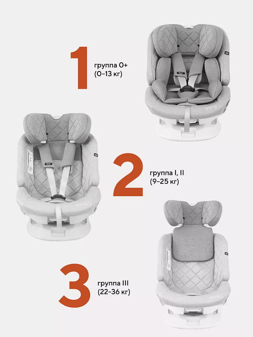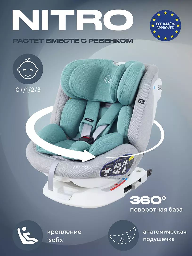 Детское автокресло RANT NITRO 0/1/2/3 покорит вас: инновационной поворотной базой; креплением ISOFIX; якорным ремнем Top Tether; всеми регулировками, соответствующими группе; 5-точечным ремнем безопасности; мягкими вкладышами для комфорта; подушкой для выравнивания спального места для младенцев; роскошным стеганым чехлом из премиальных тканей.