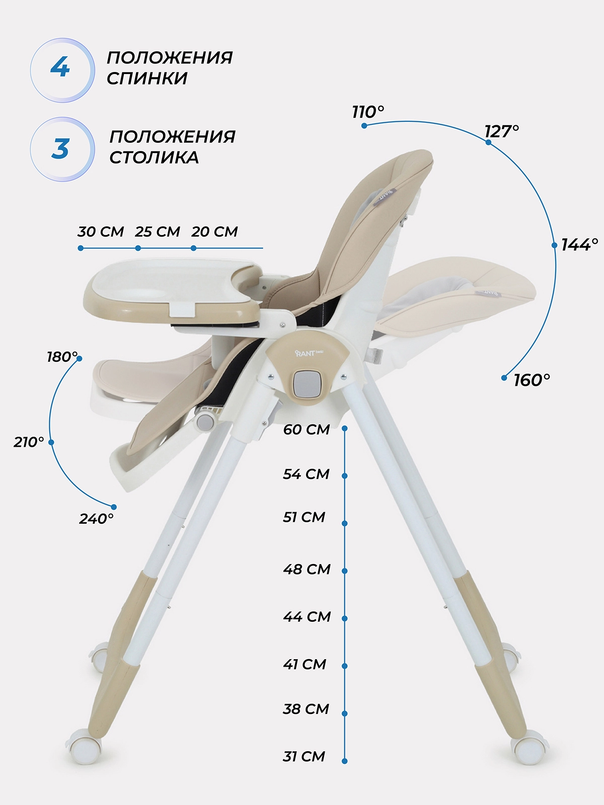 - модель имеет несколько наклонов спинки, в том числе почти горизонтальное положение для грудничков