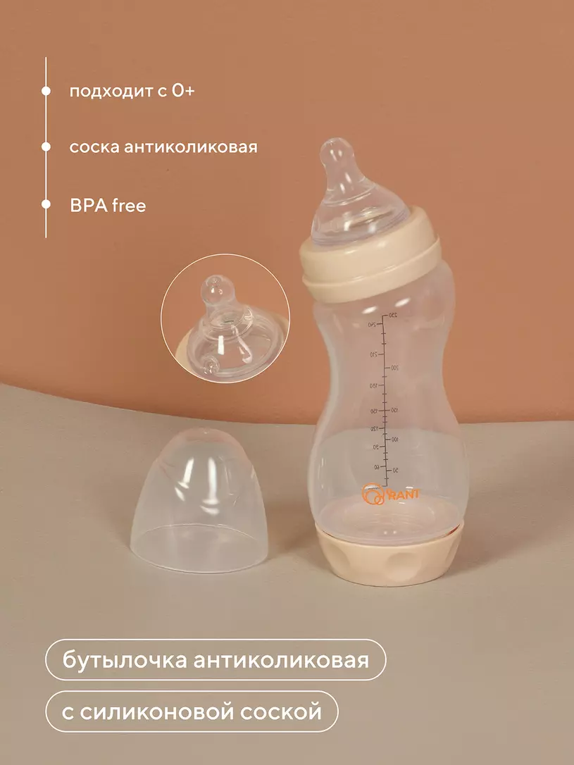 Испытайте настоящее наслаждение от процесса кормления с изогнутой бутылочкой RANT 1005. Особое строение аксессуара позволяет маме, пока малыш лежит у нее на руках, комфортно держать бутылочку в руке, а не в положении вертикально. Также открутив дно, вы получите быстрый доступ к содержимому бутылочки; сможете вылить/долить смесь, не откручивая соску и фиксирующее кольцо.