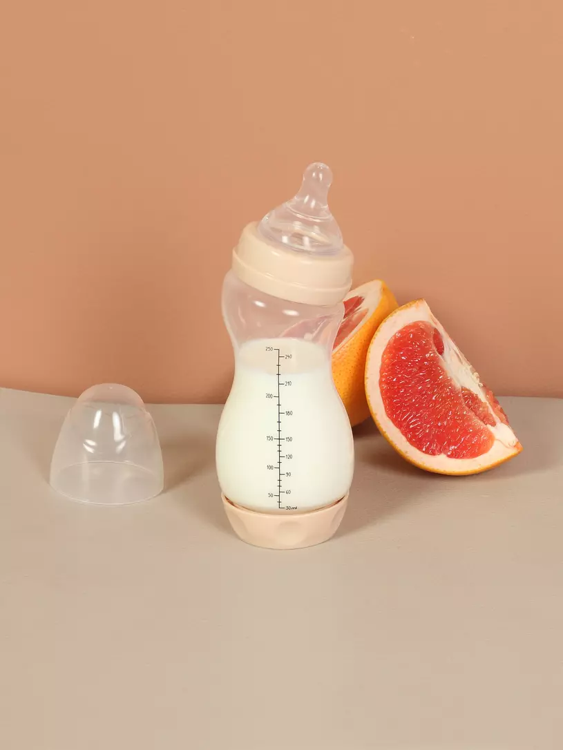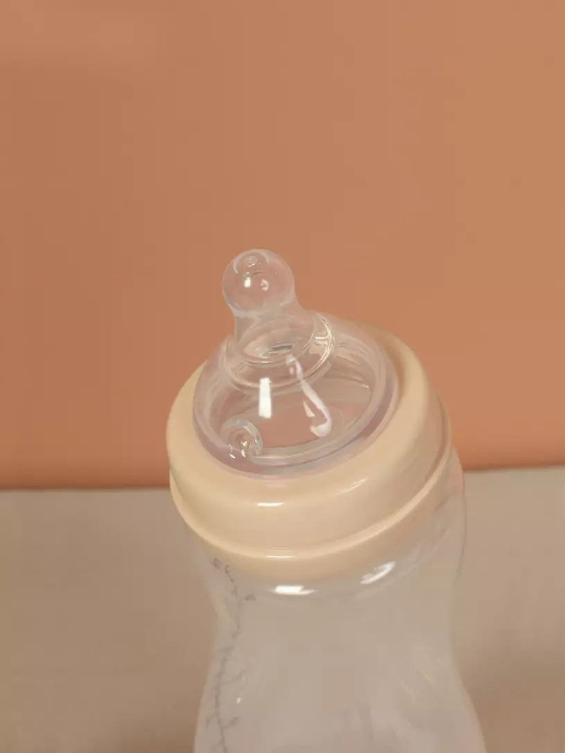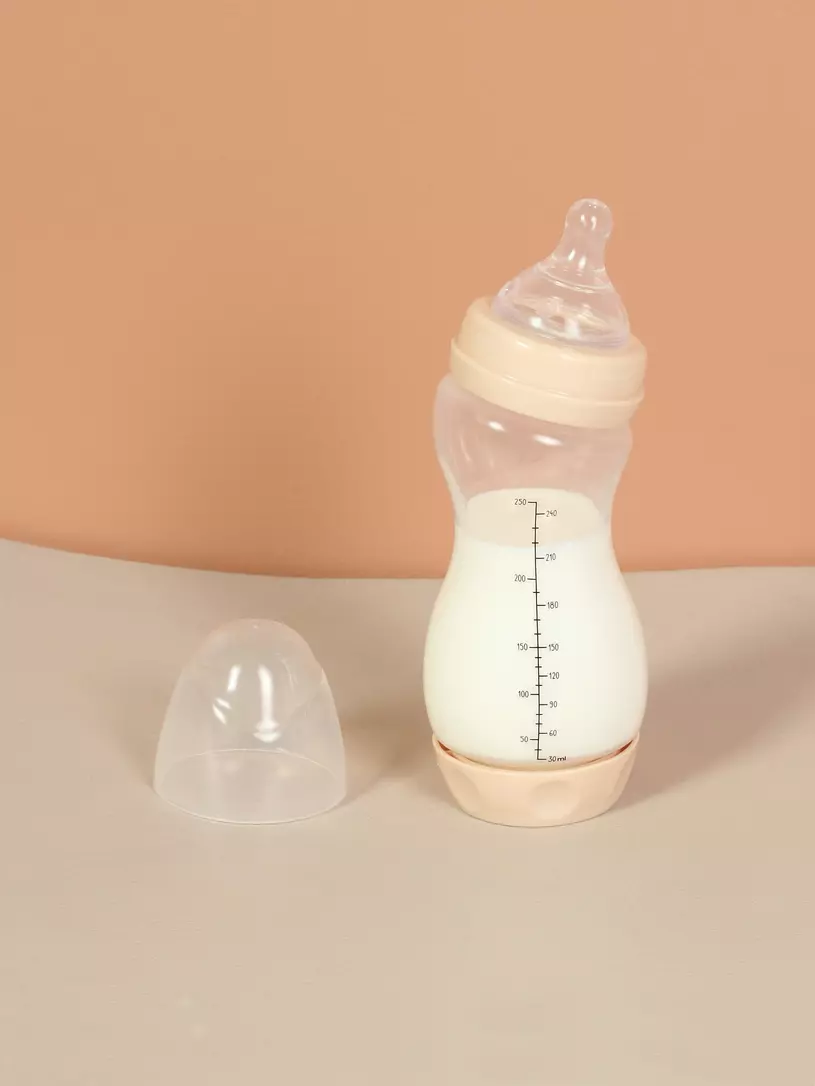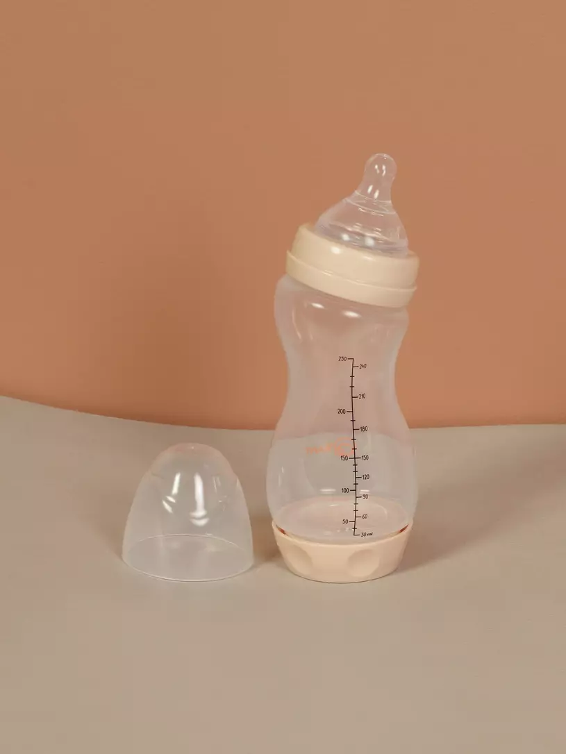 - главное преимущество изделия - небольшой анатомический уклон, разработанный совместно с врачами педиатрами. Уклон позволяет маме комфортно держать бутылочку в руке, а не в положении вертикально. При этом малыш, лежа на руках у мамы, находится в максимально естественном для себя положении.