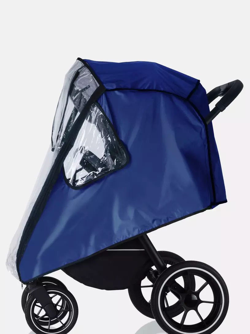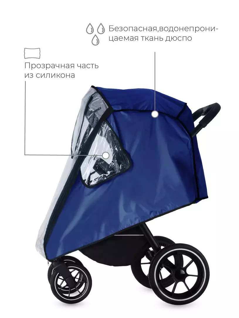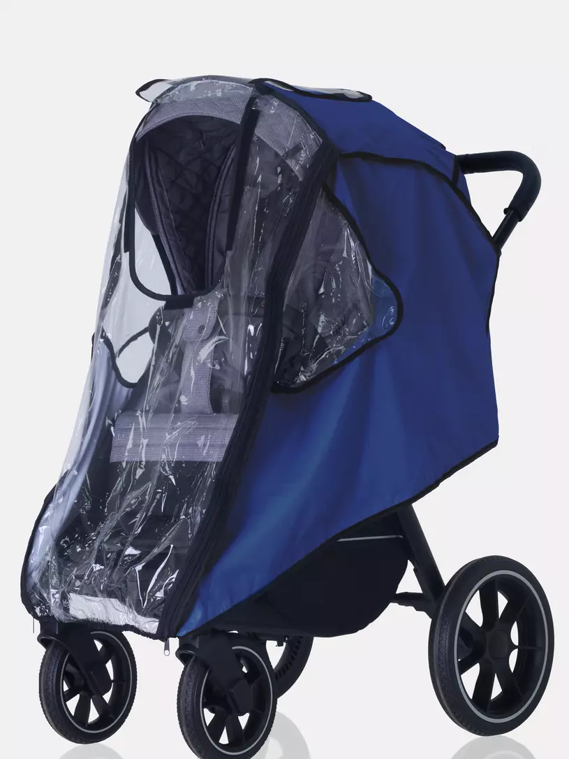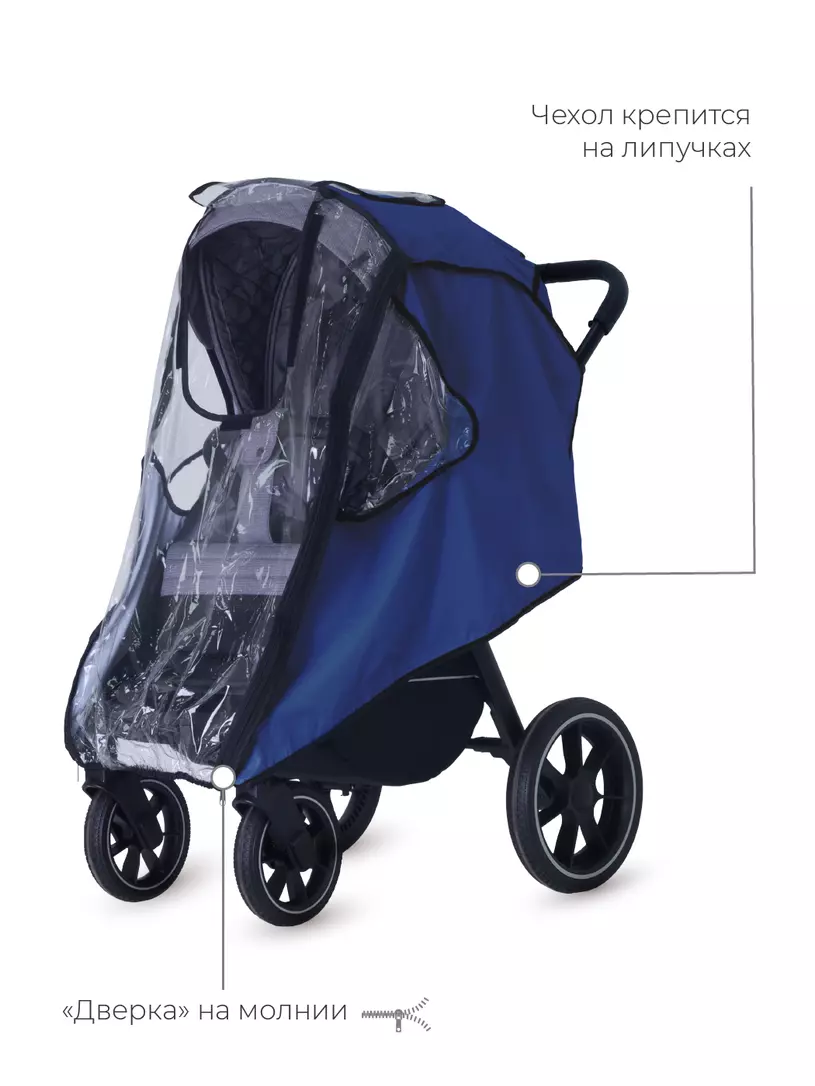 Универсальный дождевик последнего поколения для прогулочной коляски надежно защитит вашего малыша от осадков и сильного ветра. Аксессуар надежно фиксируется, имеет три смотровых окошка на липучках, "дверку" на молнии и сумку-чехол.