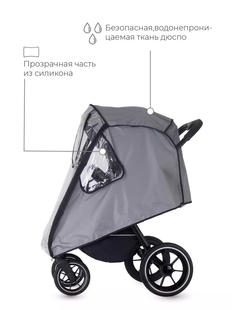 - выполнен из материалов безопасных для грудных детей: прозрачная часть - из ПВХ, тканевая - из непромокаемого материала дюспо