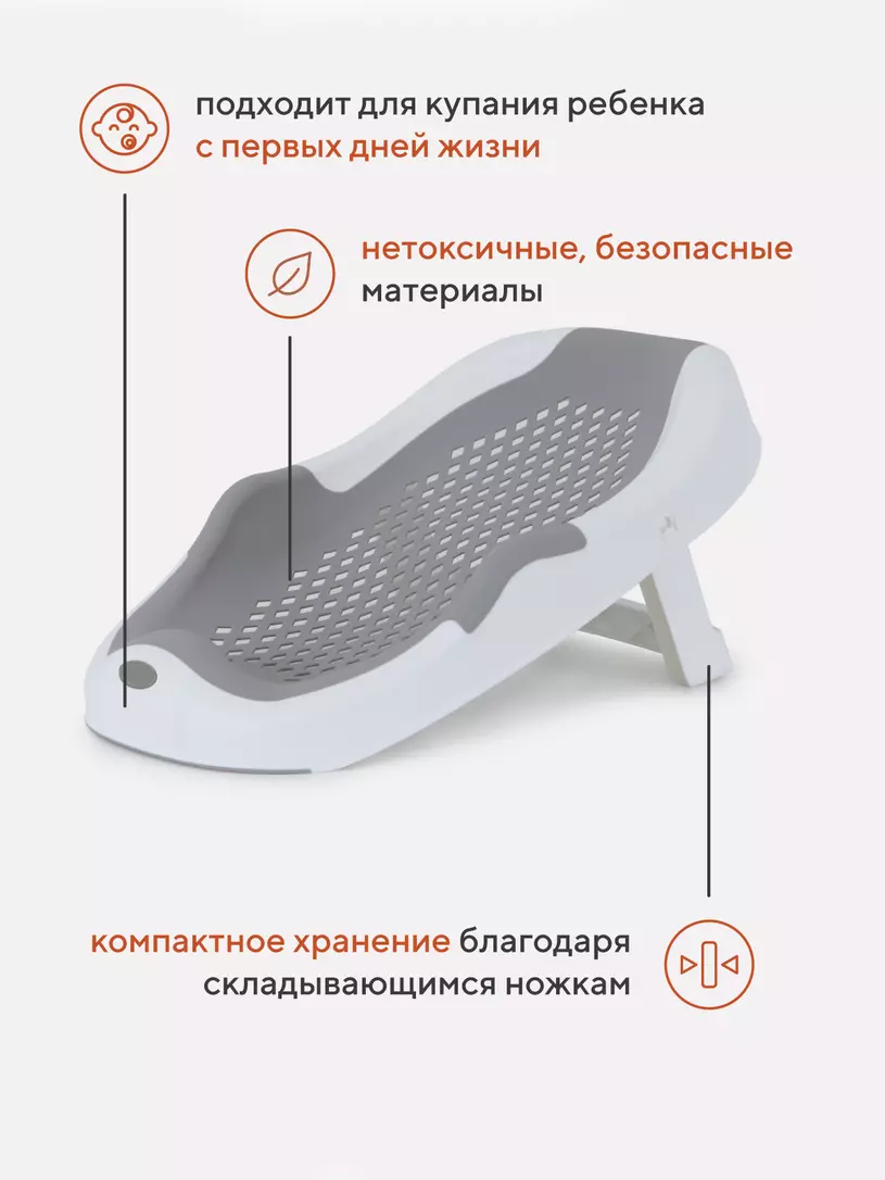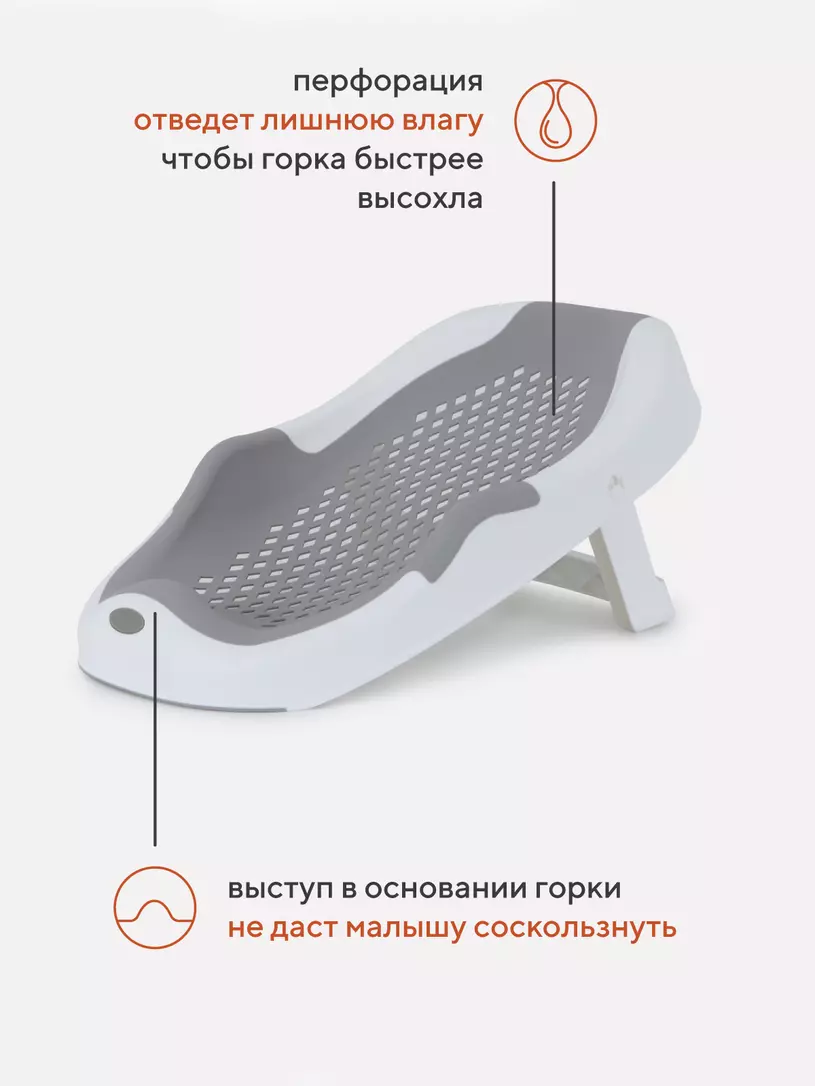 Складная анатомическая горка для купания RANT DOLPHIN, выполненная из нетоксичного пластика и антискользящего силикона, поможет маме избежать болей в спине и руках, а малышу полностью насладиться процессом. Но главное преимущество изделия - компактность в сложенном виде.