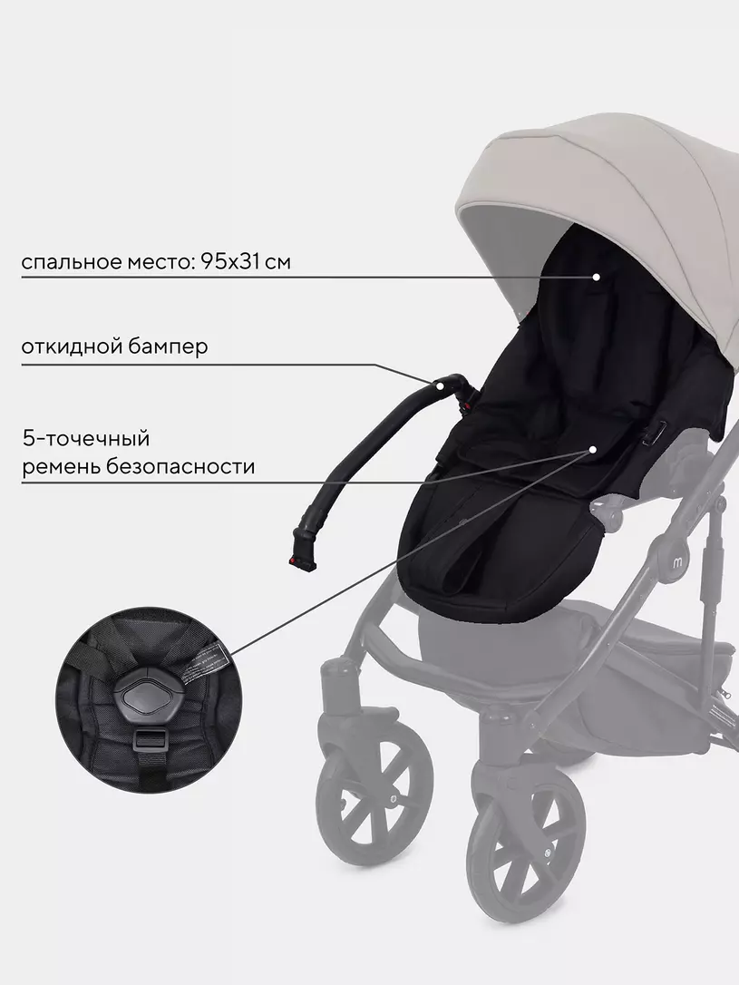 - москитная сетка, встроенная в капюшон, фиксируется на корпусе люльки, чтобы уберечь малыша от насекомых, палящего солнца, дорожной пыли и любопытных взглядов