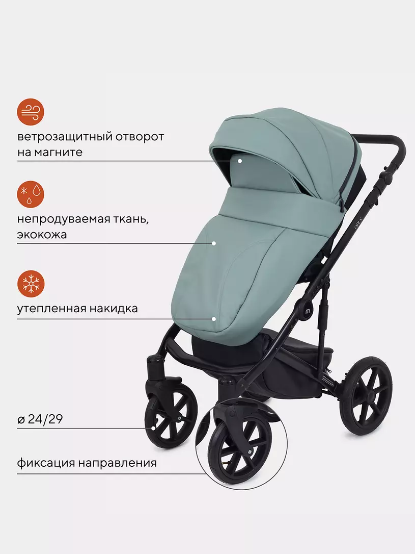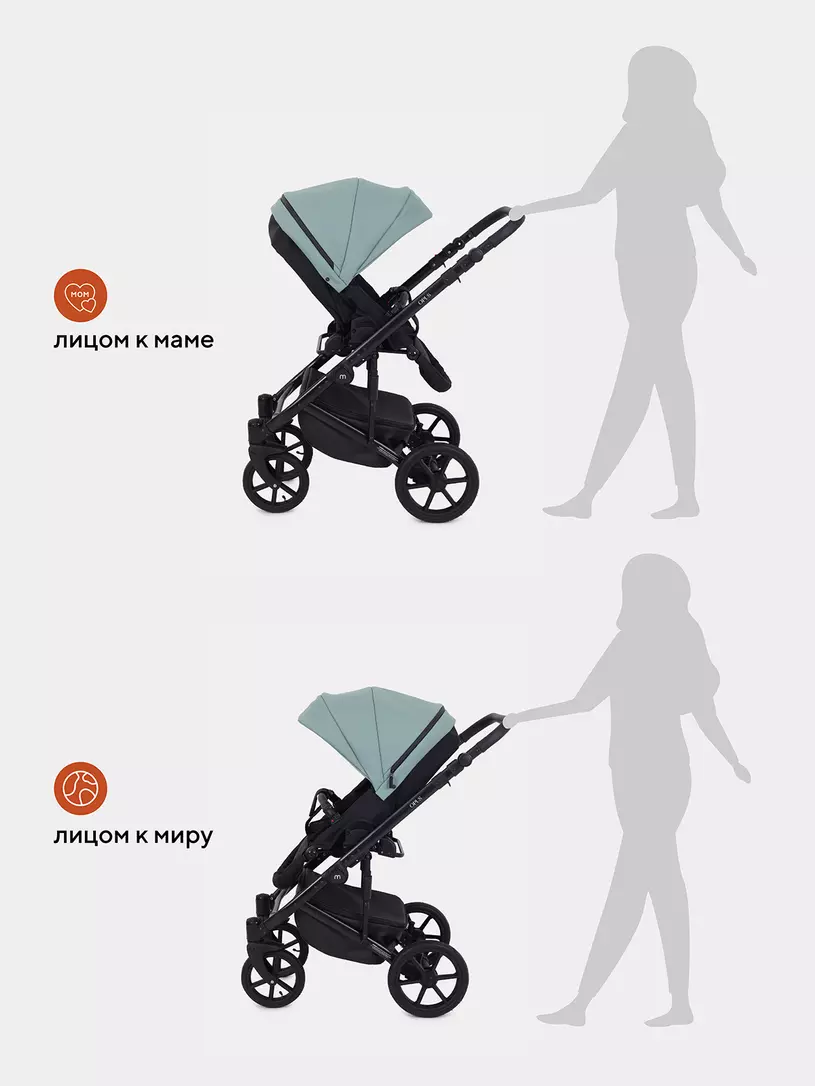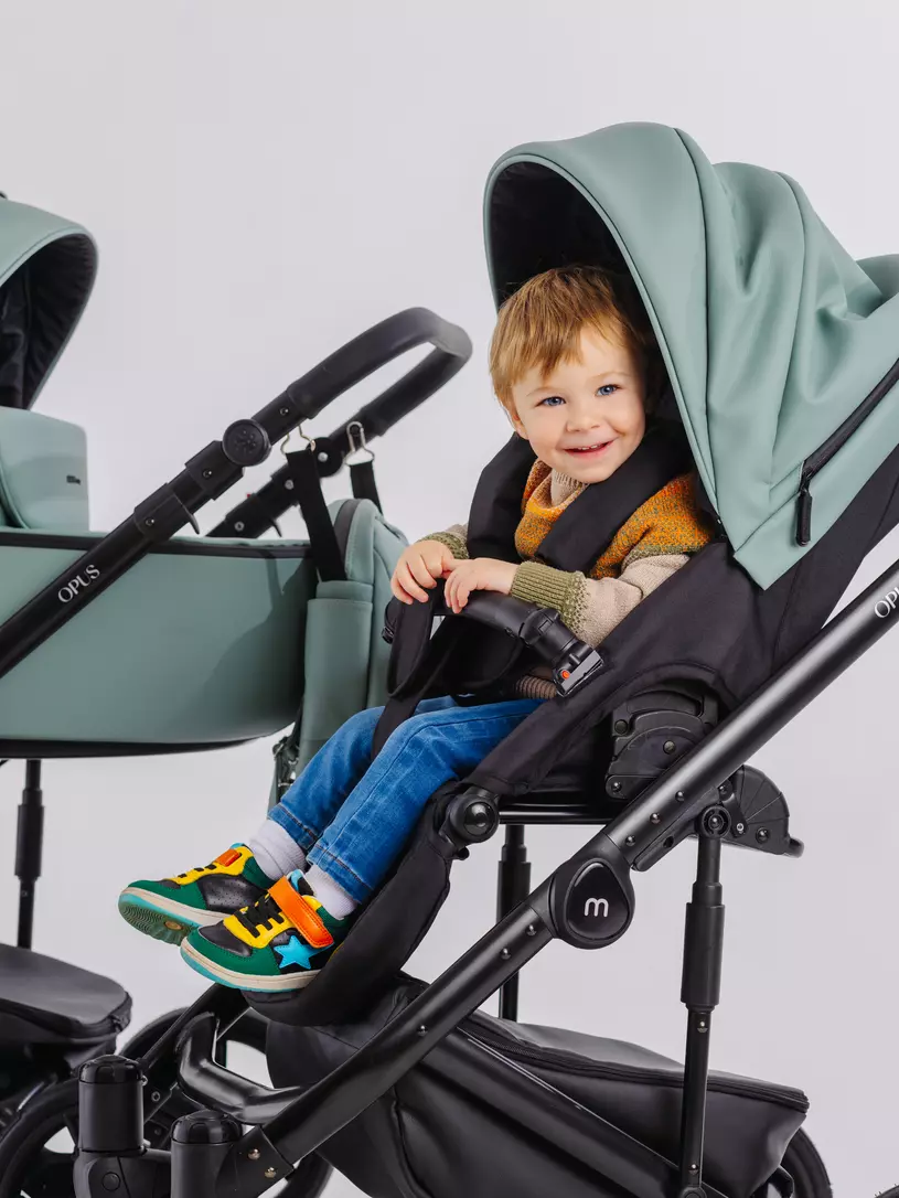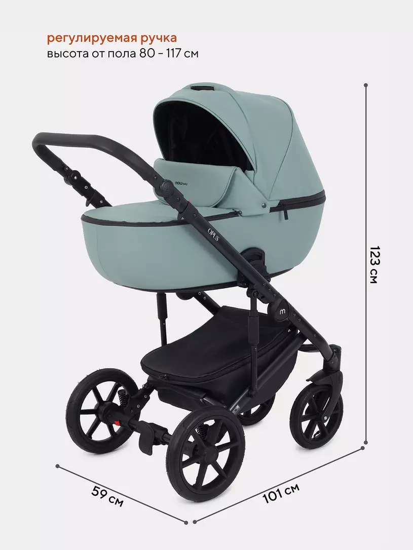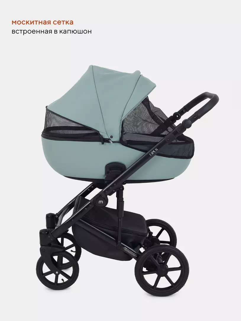 Детская коляска 2 в 1 Mowbaby Opus покорит вас: встроенной в капюшон москитной сеткой, двойной амортизацией, регулировкой спинки люльки снаружи блока, ветрозащитными отворотами на магнитах в обоих блоках (спальном и прогулочном).