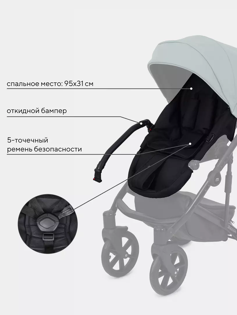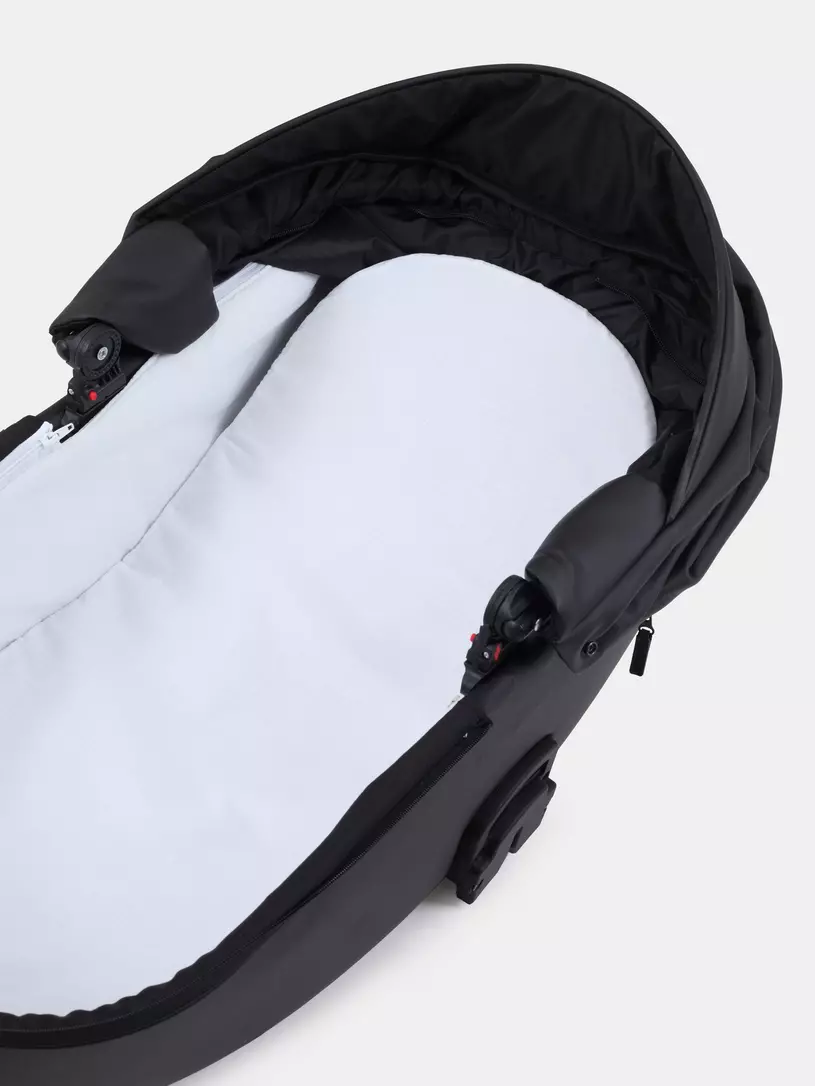 - москитная сетка, встроенная в капюшон, фиксируется на корпусе люльки, чтобы уберечь малыша от насекомых, палящего солнца, дорожной пыли и любопытных взглядов