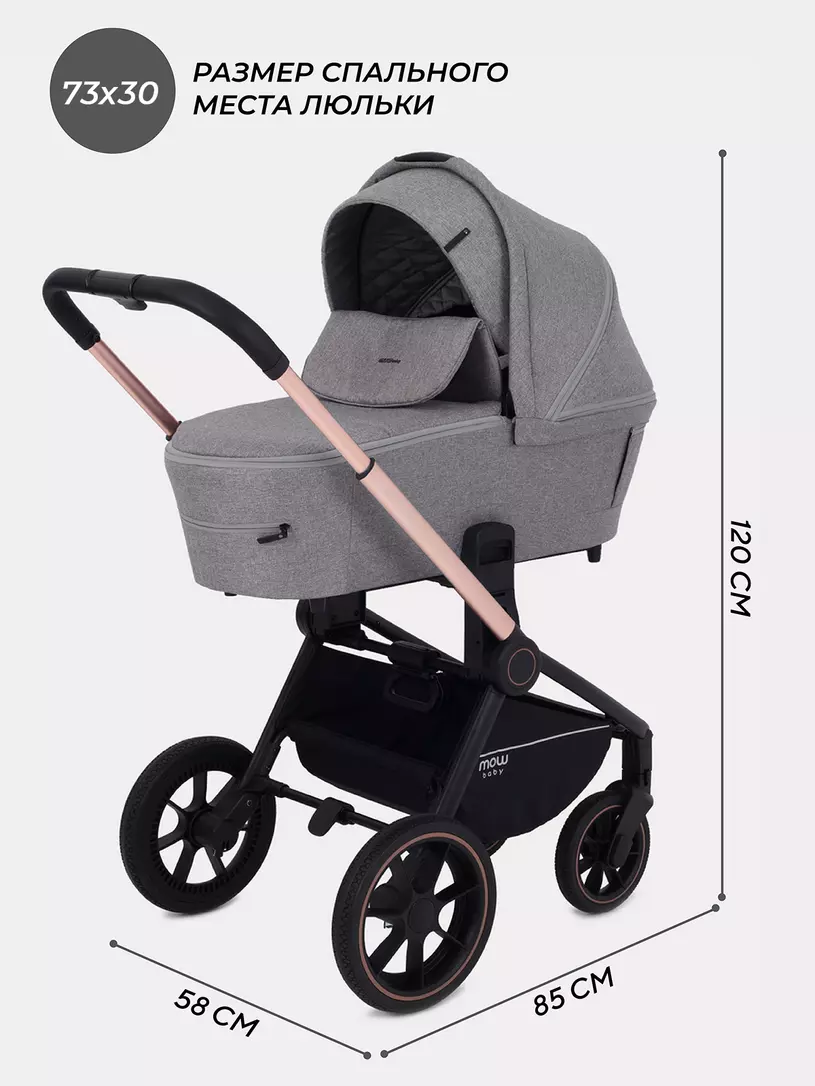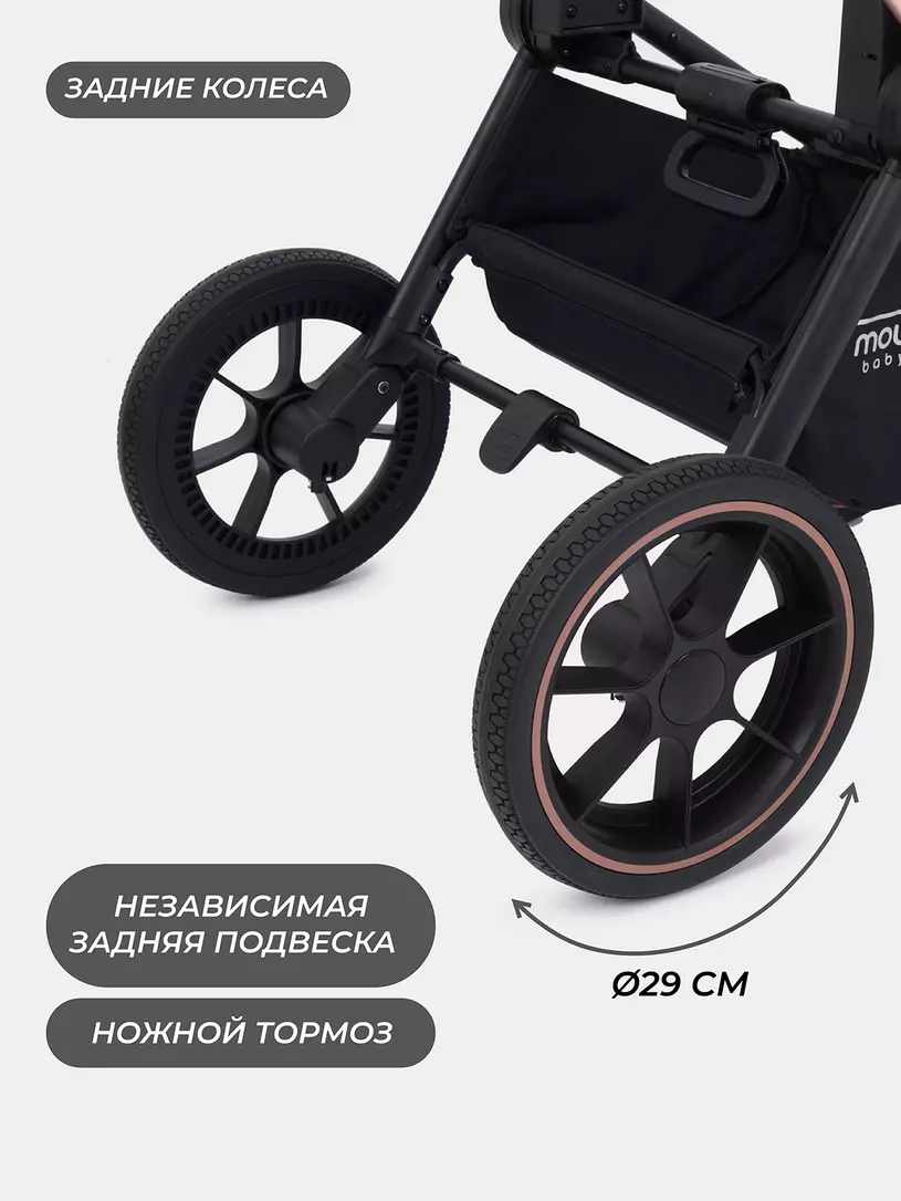 - увеличенный диаметр колес позволит коляске спокойно преодолеть сугробы и бездорожье