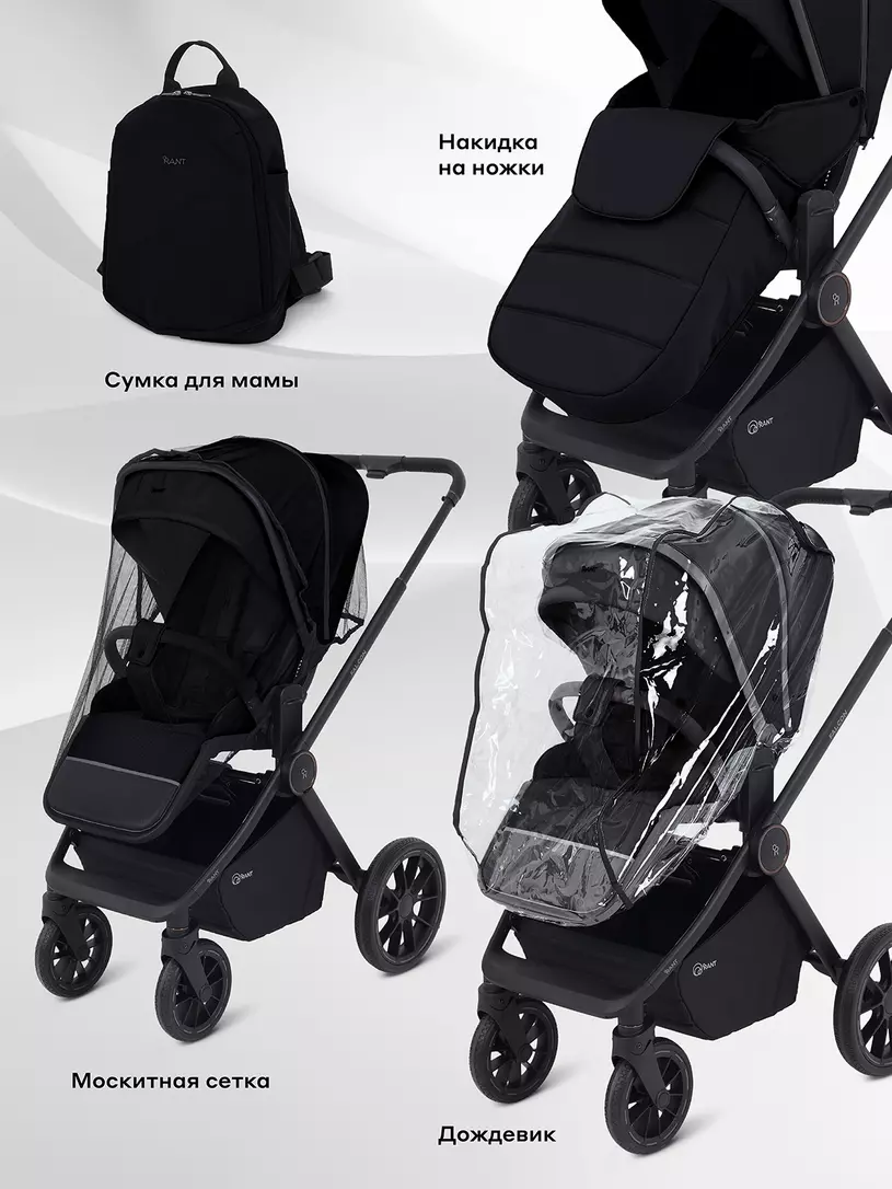 - богатая комплектация: стильный рюкзачок для мамы, дождевик, москитная сетка