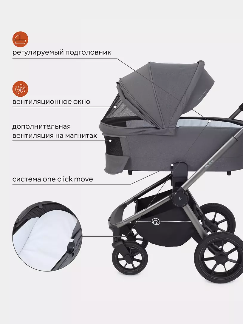 Топовую модель RANT FLEX мы сделали еще совершенней! Новые фишки детской коляски 2 в 1: абсолютная инновация - магнитный замок на ремне безопасности, быстросъемная люлька с памятью кнопок, вентиляционное окно в изголовье спального блока, люлька стала еще просторнее, регулировка капюшона в прогулочном блоке по высоте, эффектный графитовый оттенок рамы, трендовая палитра цветов вкупе с премиальной тканью.