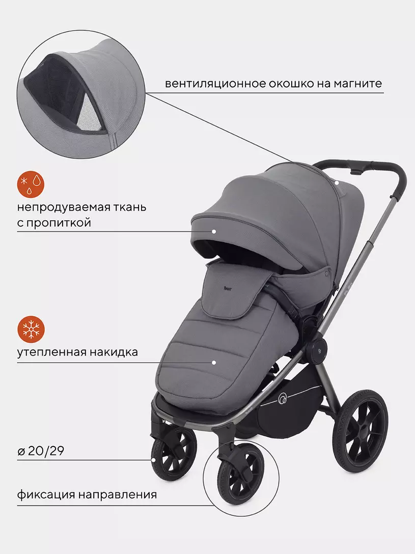 - модель дополнена богатой комплектацией: стильным рюкзаком для мамы, москитной сеткой, дождевиком