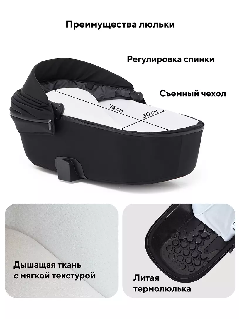 - абсолютная инновация модели - литая термолюлька. Особый материал, из которого выполнен блок, идеально поддерживает микроклимат внутри: на улице жарко - в люльке прохладно, на улице холодно - в люльке тепло. В то же время высокотехнологичный материал люльки характеризуется легким весом и ударопрочностью.