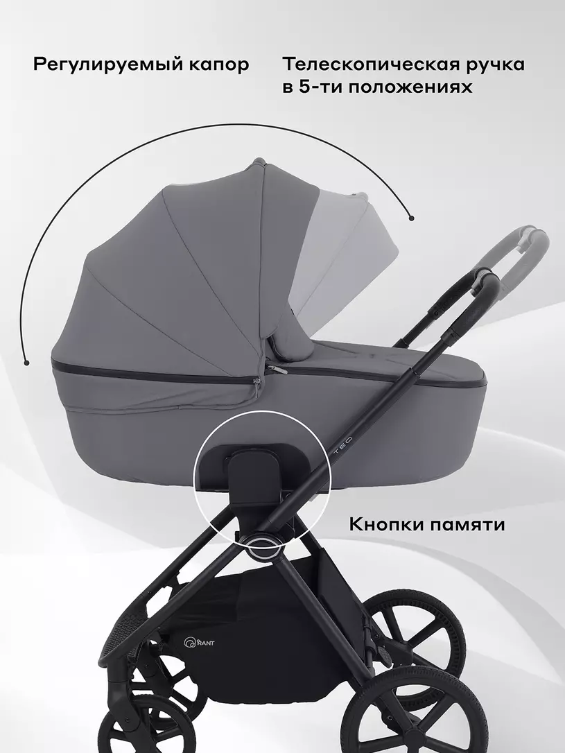 Революционная модель в мире колясок, отвечающая всем запросам молодых прогрессивных родителей и их малышей. Детская коляска 2 в 1 RANT TEO покорит вас: абсолютной инновацией - полностью литой термолюлькой, быстросъемными блоками с памятью кнопок, функцией автоскладывания (вместе с прогулочным блоком), регулировкой капюшона в прогулочном блоке по высоте, отточенным динамичным дизайном.