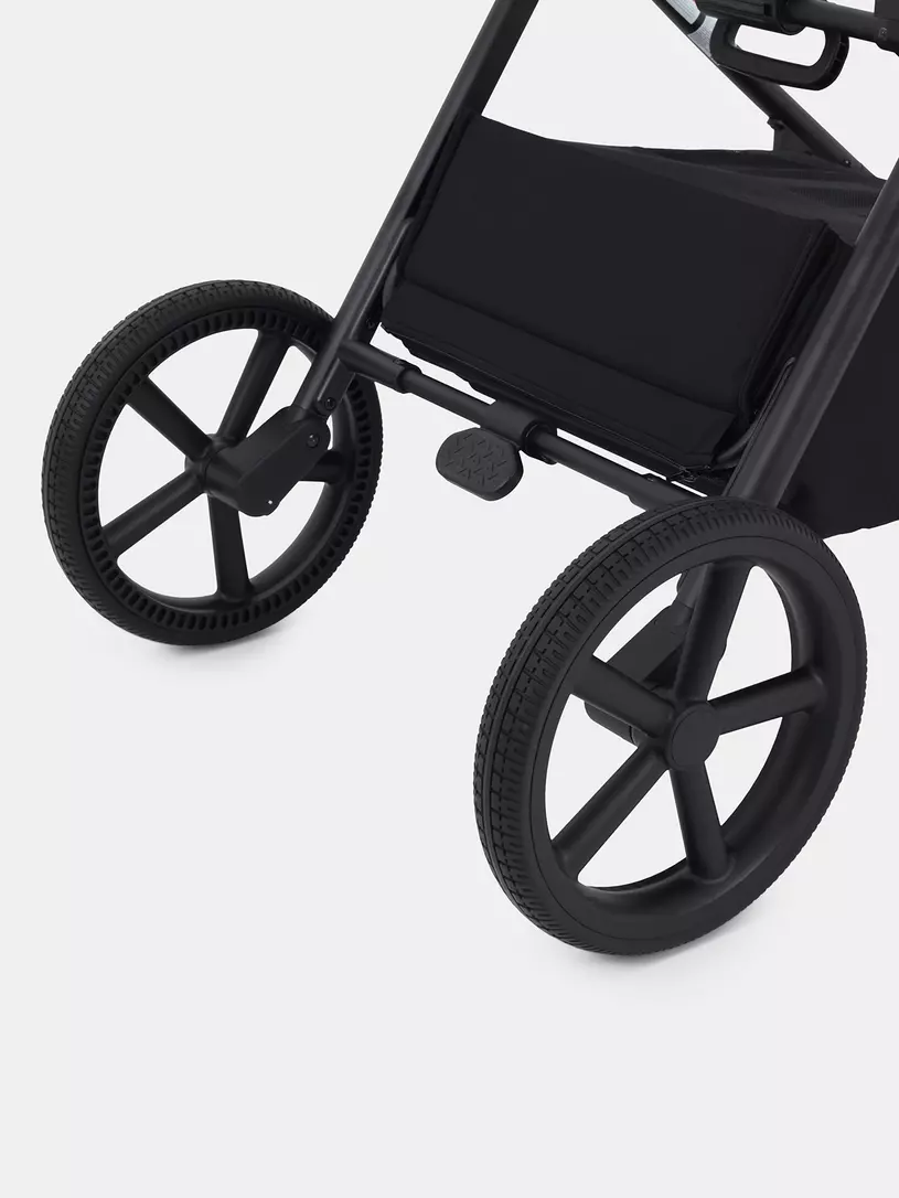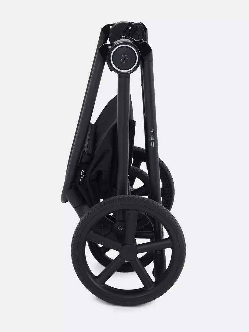 - коляска дополнена функцией автоскладывания - просто нажмите кнопку и слегка подтолкните подножку в обратную сторону. Модель складывается автоматически сразу вместе с блоком, независимо от его положения (по ходу/против хода).