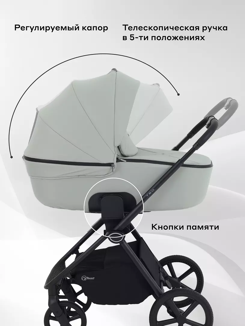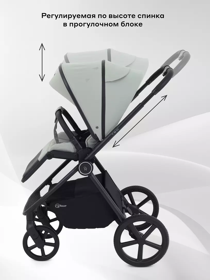 Революционная модель в мире колясок, отвечающая всем запросам молодых прогрессивных родителей и их малышей. Детская коляска 2 в 1 RANT TEO покорит вас: абсолютной инновацией - полностью литой термолюлькой, быстросъемными блоками с памятью кнопок, функцией автоскладывания (вместе с прогулочным блоком), регулировкой капюшона в прогулочном блоке по высоте, отточенным динамичным дизайном.