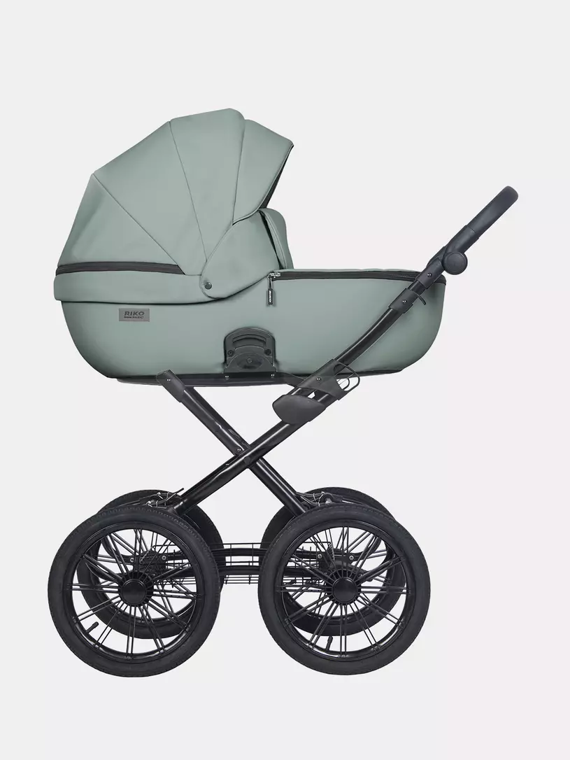Детская коляска 2 в 1 RIKO BASIC MONTANA ECCO PRESTIGE, выполненная из экокожи, покорит вас: вездеходной классической рамой; быстросъемными блоками; спинкой люльки, регулируемой с внешней стороны блока; регулируемой вентиляцией в дне люльки; реверсивным прогулочным блоком.