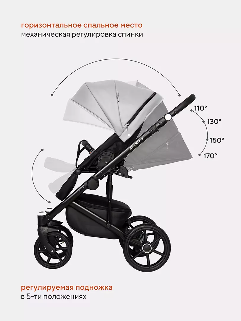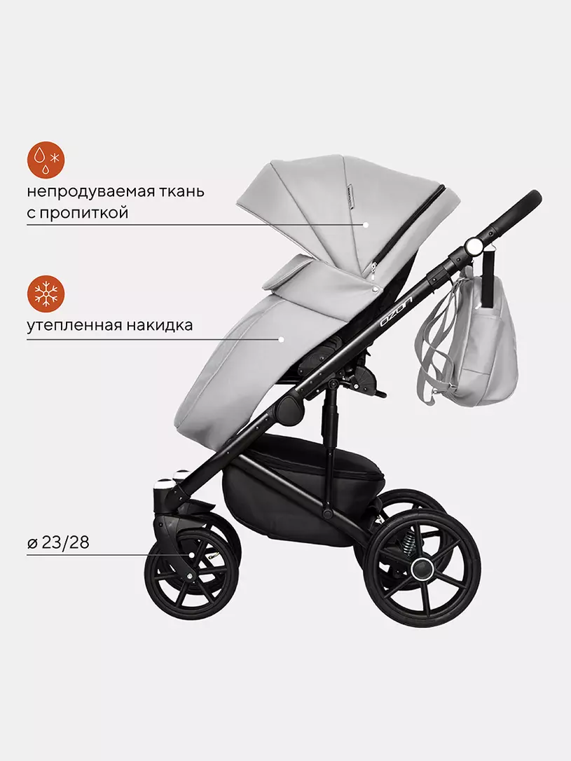 Детская коляска 2 в 1 RIKO BASIC OZON покорит вас: спинкой люльки, регулируемой с внешней стороны блока; москитной сеткой, встроенной в капюшон люльки; регулируемой вентиляцией в дне люльки; быстросъемными блоками.