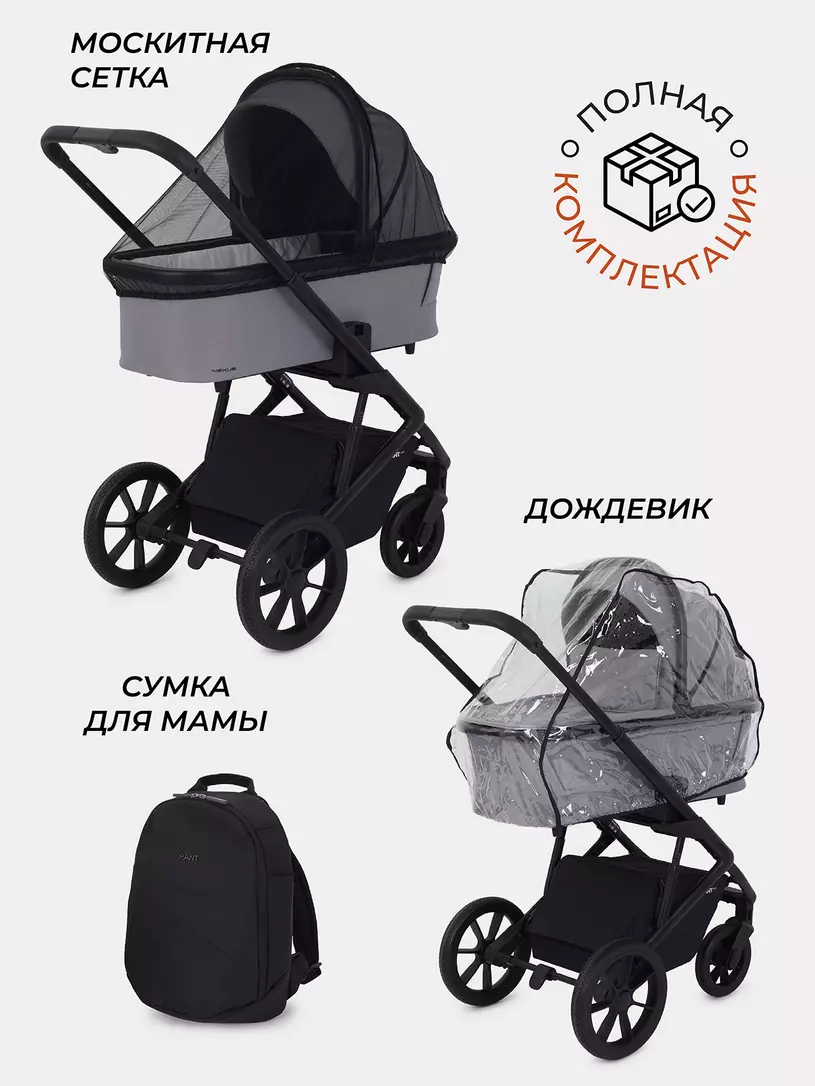 • богатая комплектация: стильный рюкзачок для мамы, дождевик, москитная сетка