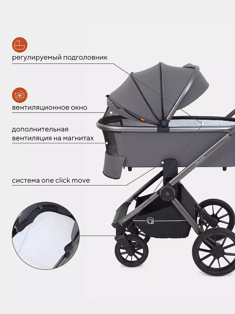 - быстросъемная люлька в этой модели дополнена специальными кнопками с памятью. Инновация позволяет непринужденно снимать спальный блок одной рукой.