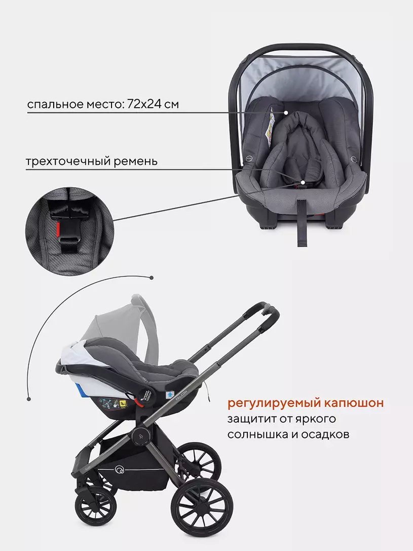 - в капюшоне удобная ручка для транспортировки - люлька не будет перевешиваться, даже если внутри малыш
