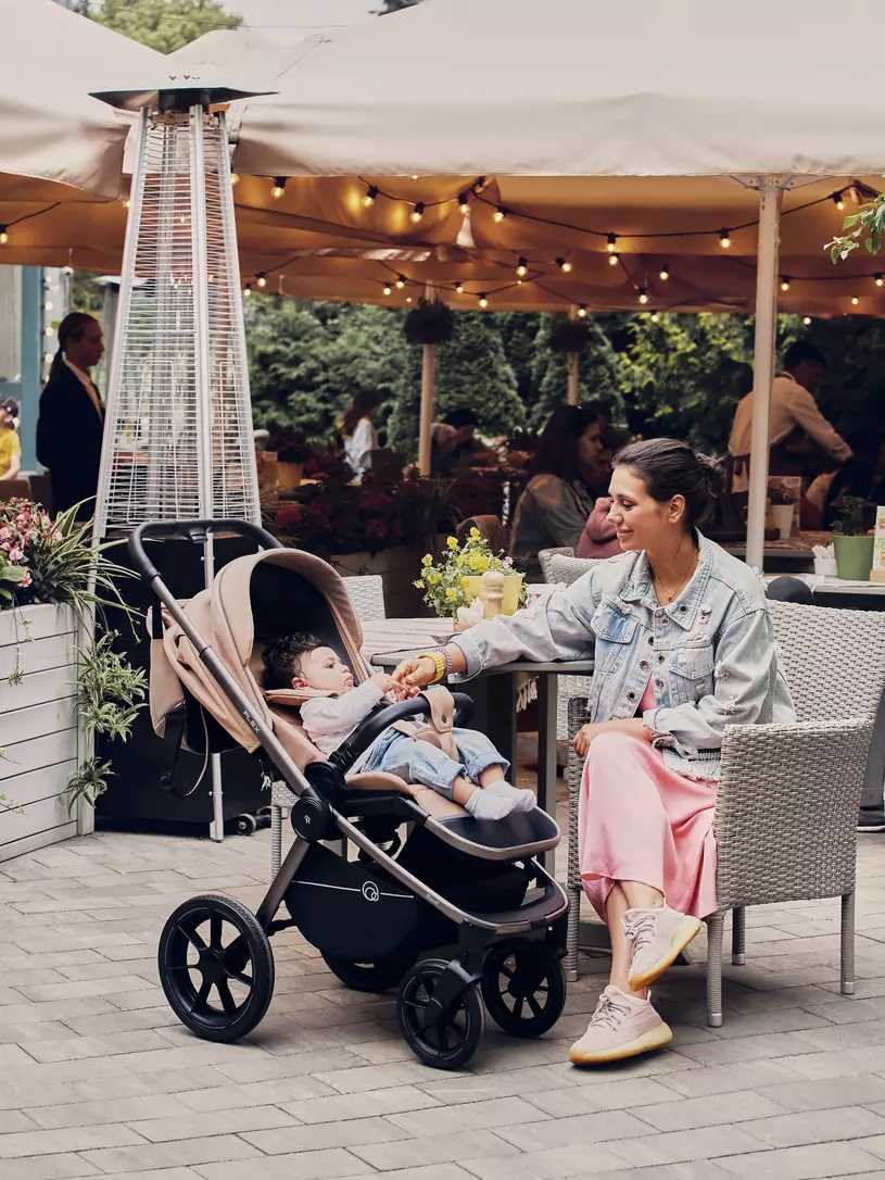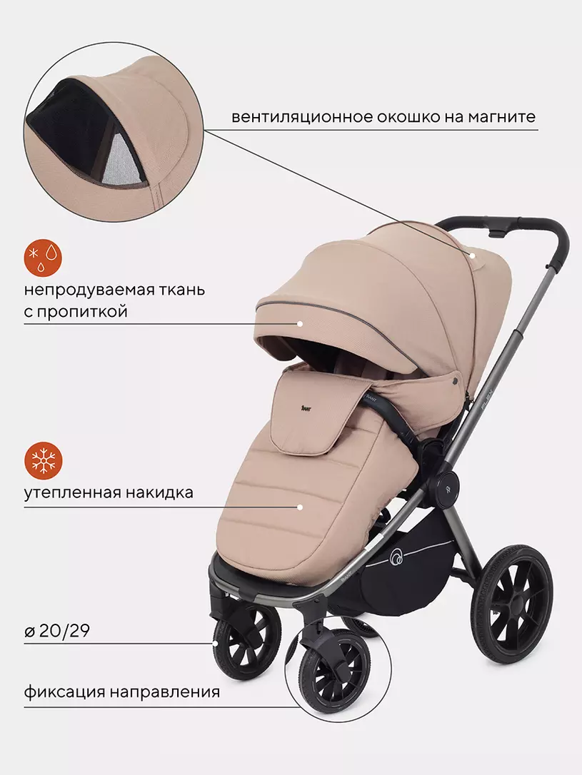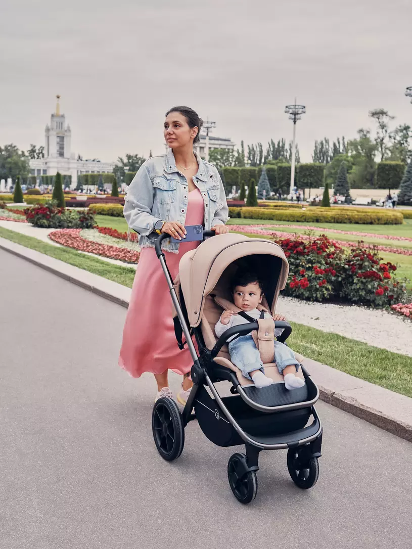 - модель дополнена богатой комплектацией: стильным рюкзаком для мамы, москиткой, дождевиком