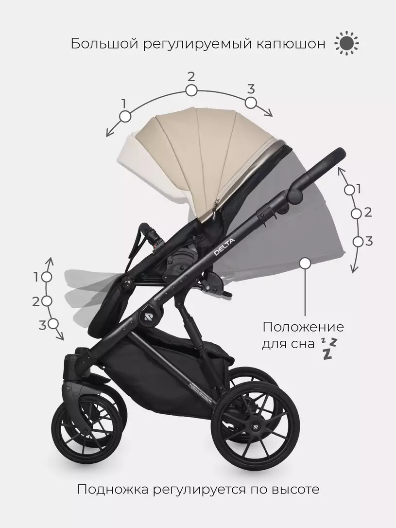 Детская коляска 3 в 1 RIKO BASIC DELTA, выполненная из экокожи и дополненная автолюлькой, покорит вас: быстросъемными блоками; реверсивным прогулочным блоком; мягкой регулируемой амортизацией; вентиляцией в капюшонах; компактностью в сложенном виде.