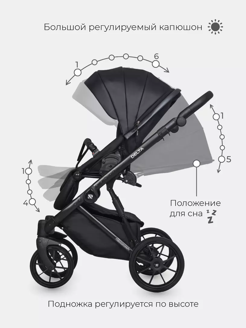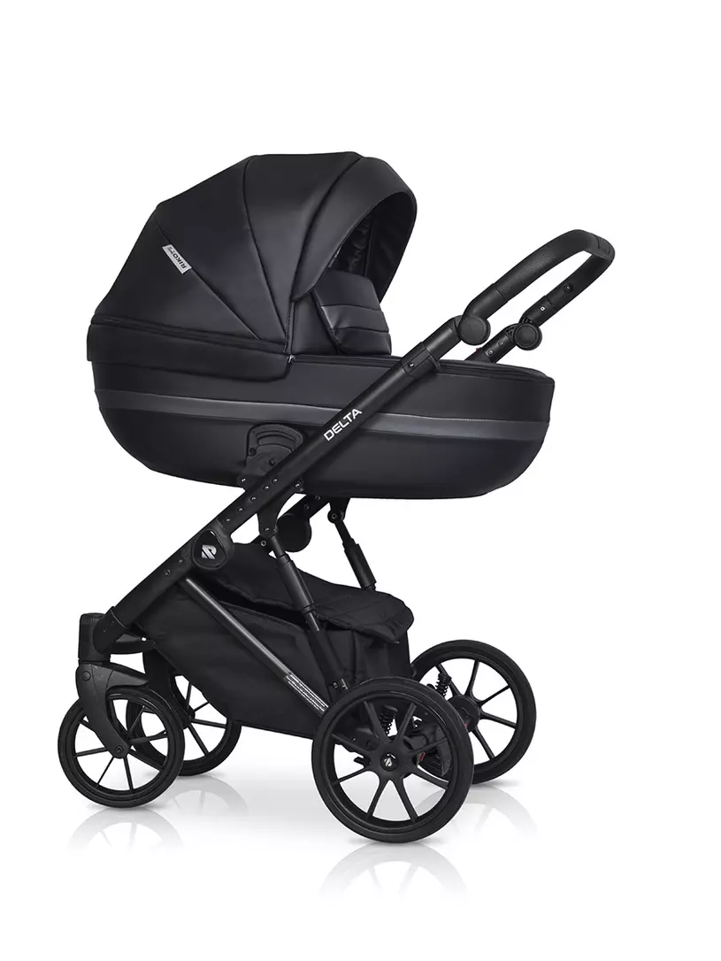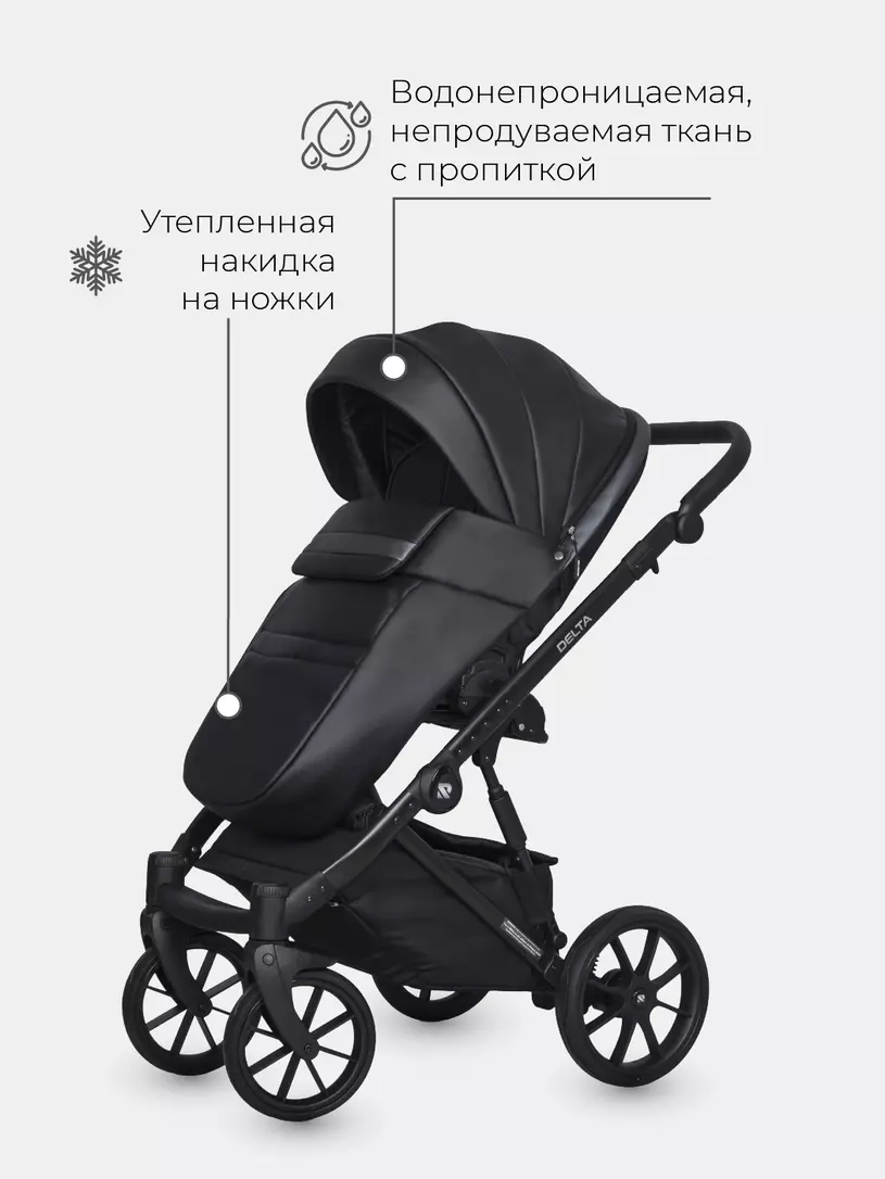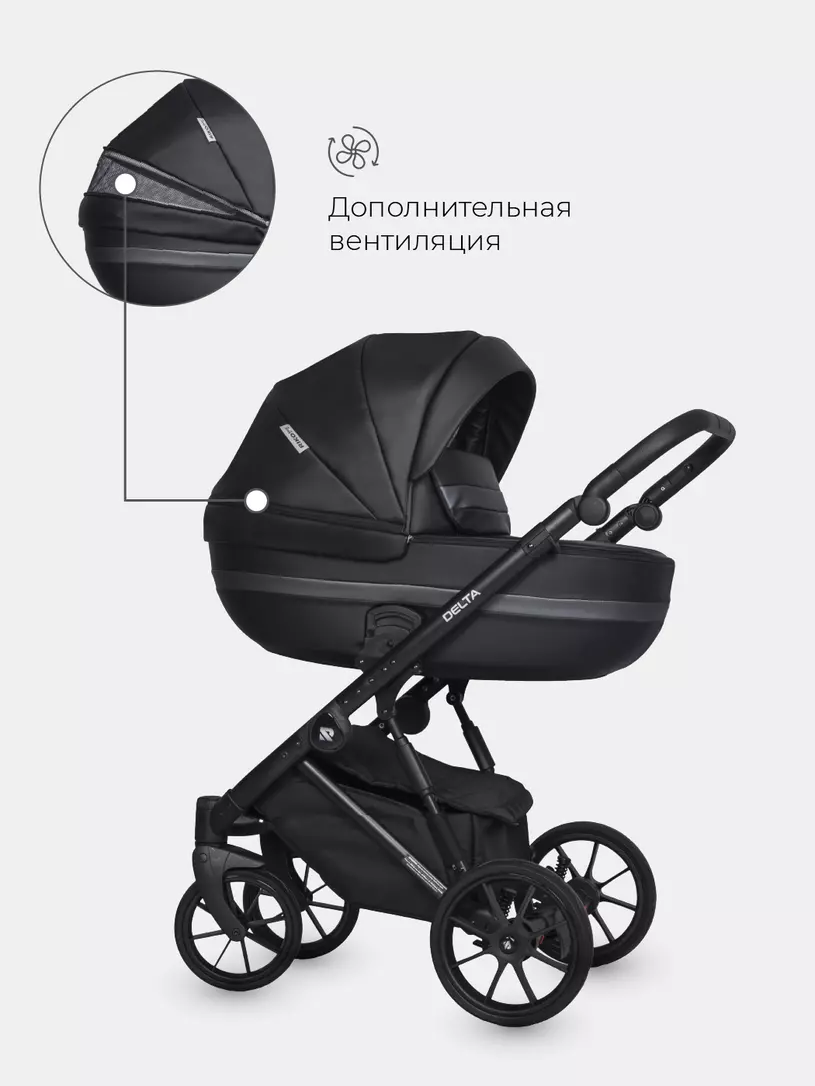 Детская коляска 3 в 1 RIKO BASIC DELTA, выполненная из экокожи и дополненная автолюлькой, покорит вас: быстросъемными блоками; реверсивным прогулочным блоком; мягкой регулируемой амортизацией; вентиляцией в капюшонах; компактностью в сложенном виде.
