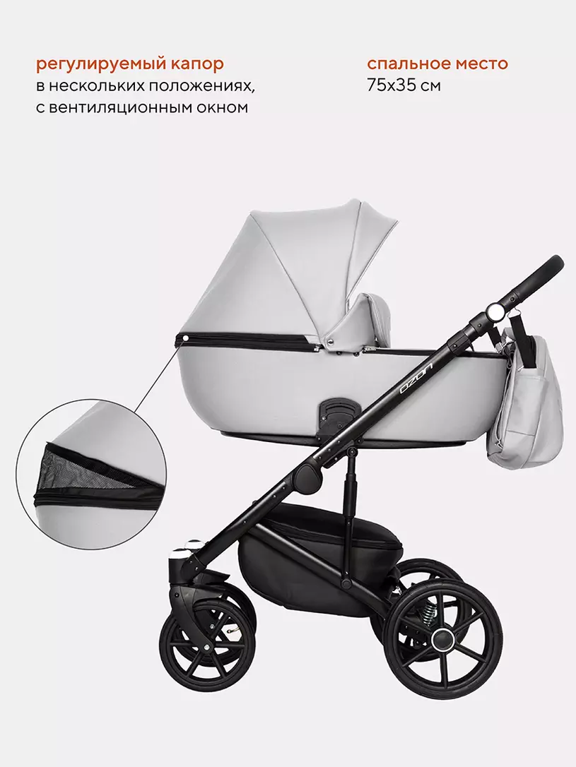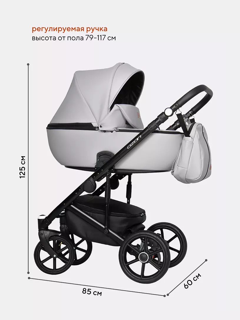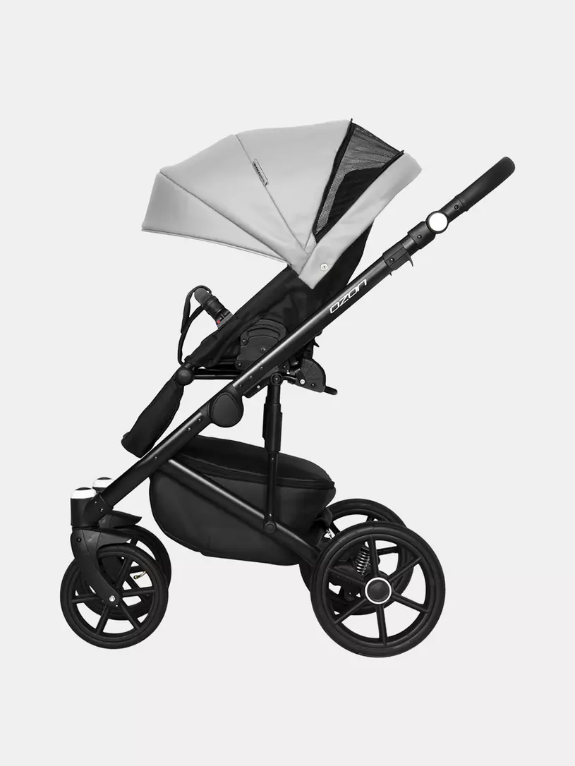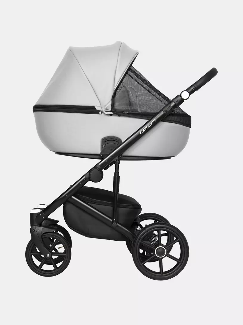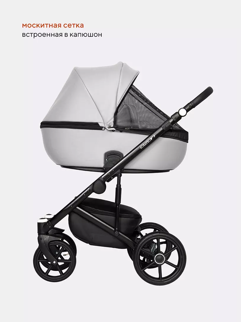 Детская коляска 3 в 1 RIKO BASIC OZON, дополненная автолюлькой, покорит вас: спинкой люльки, регулируемой с внешней стороны блока; москитной сеткой, встроенной в капюшон люльки; регулируемой вентиляцией в дне люльки; быстросъемными блоками.
