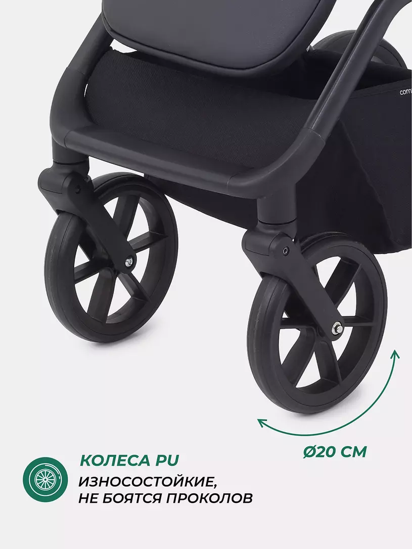 - колеса, выполненные из полиуретана, обеспечивают коляску мягким ходом и прекрасной амортизацией