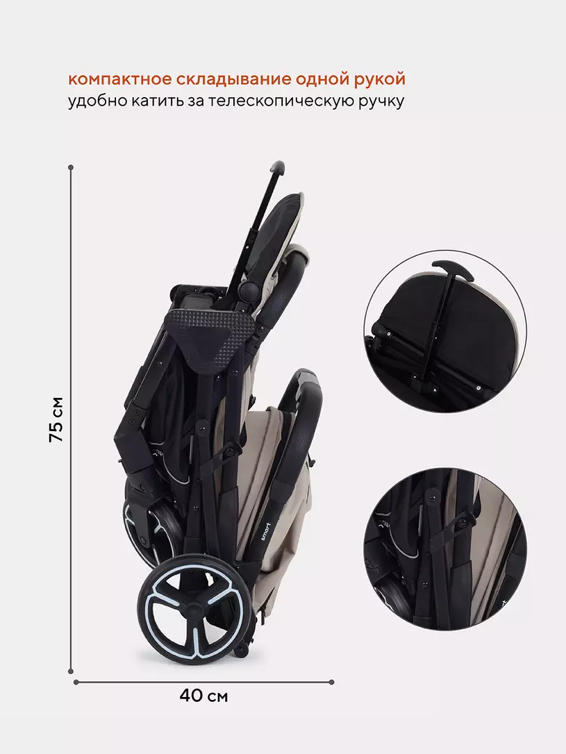- сложенную коляску можно катить как чемодан за специальную телескопическую ручку