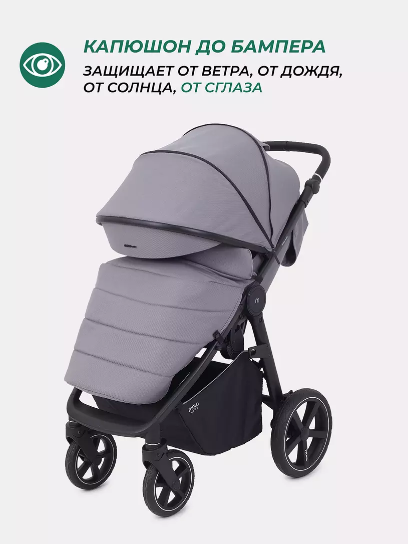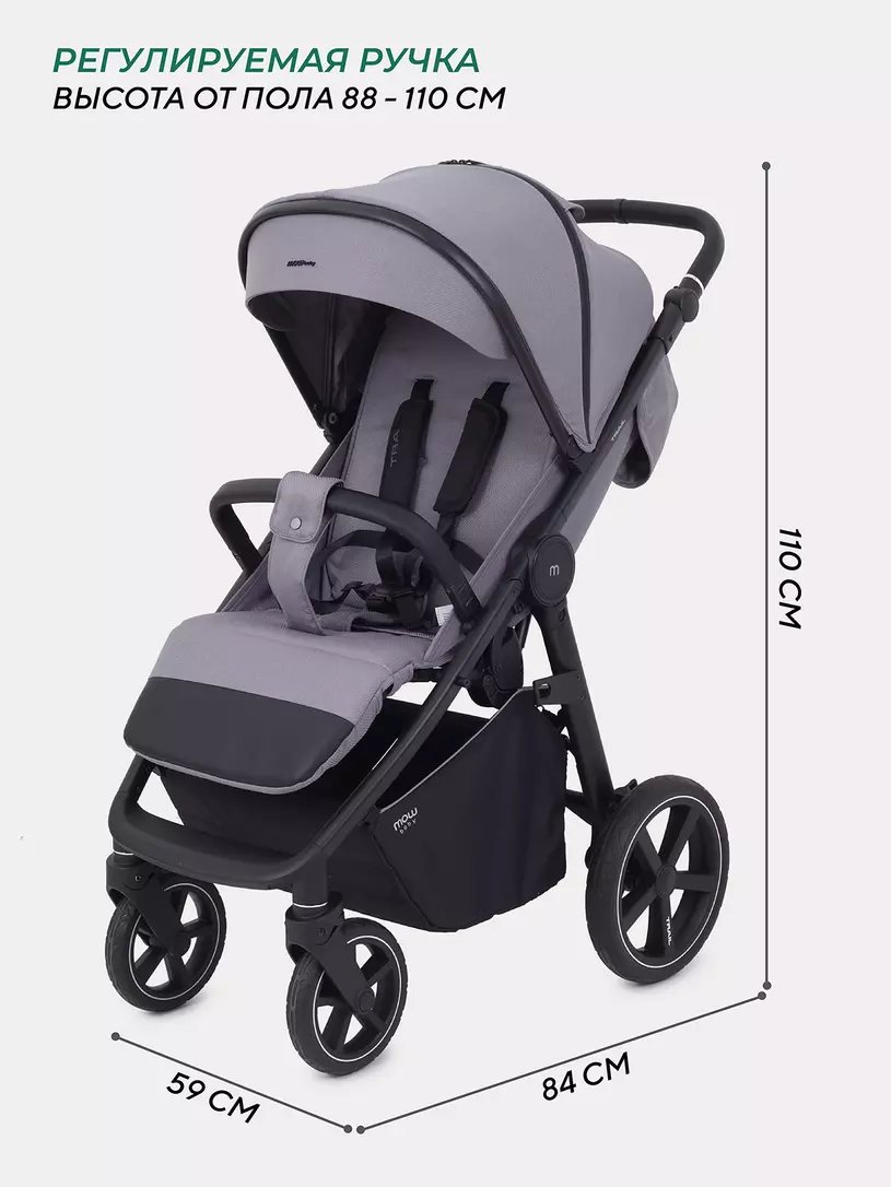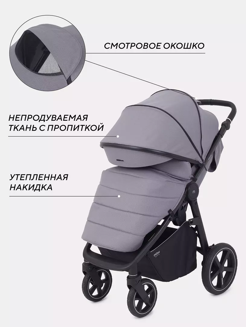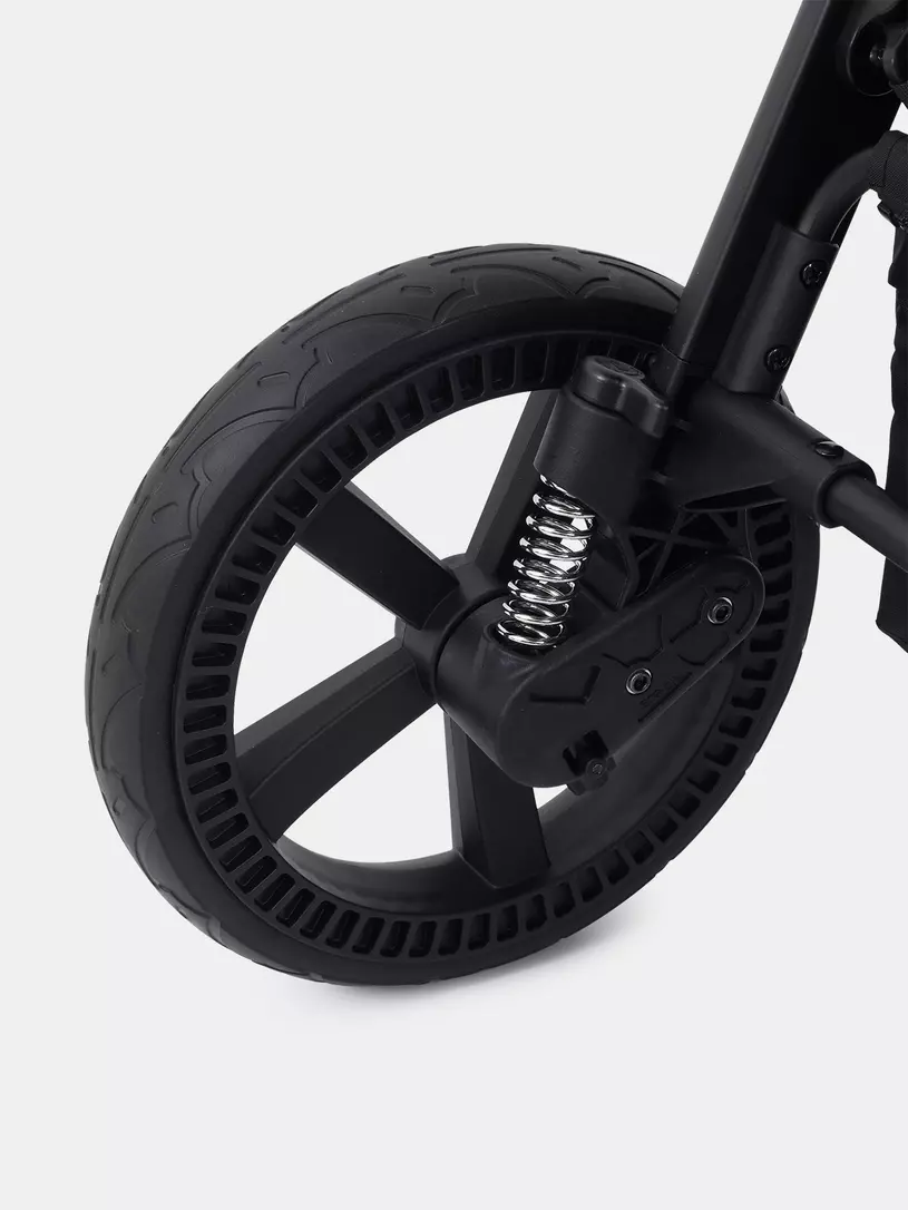 - главная инновация модели - бескамерные резиновые колеса, которые не требуют поддува. Благодаря им коляска легко преодолеет сложный ландшафт: сугробы, грязь, песок, гравий…