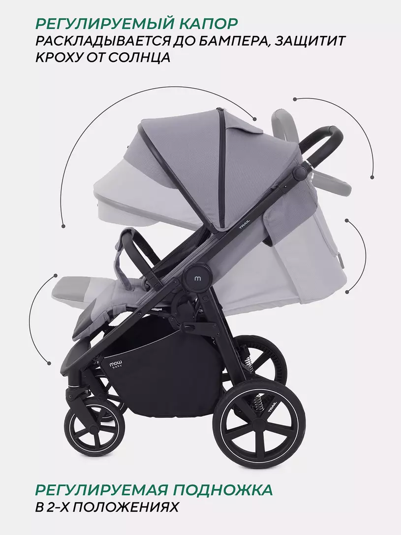 Идеальная модель как для лета, так и для зимы! Детская прогулочная коляска MOWBABY TRAIL покорит вас: мощными колесами, не требующими поддува, которые шутя справятся с проблемным ландшафтом; регулируемой пружинной амортизацией. К тому же сложенная коляска устойчиво стоит в вертикальном положении, что не даст ей испачкаться и обеспечит комфортное хранение.