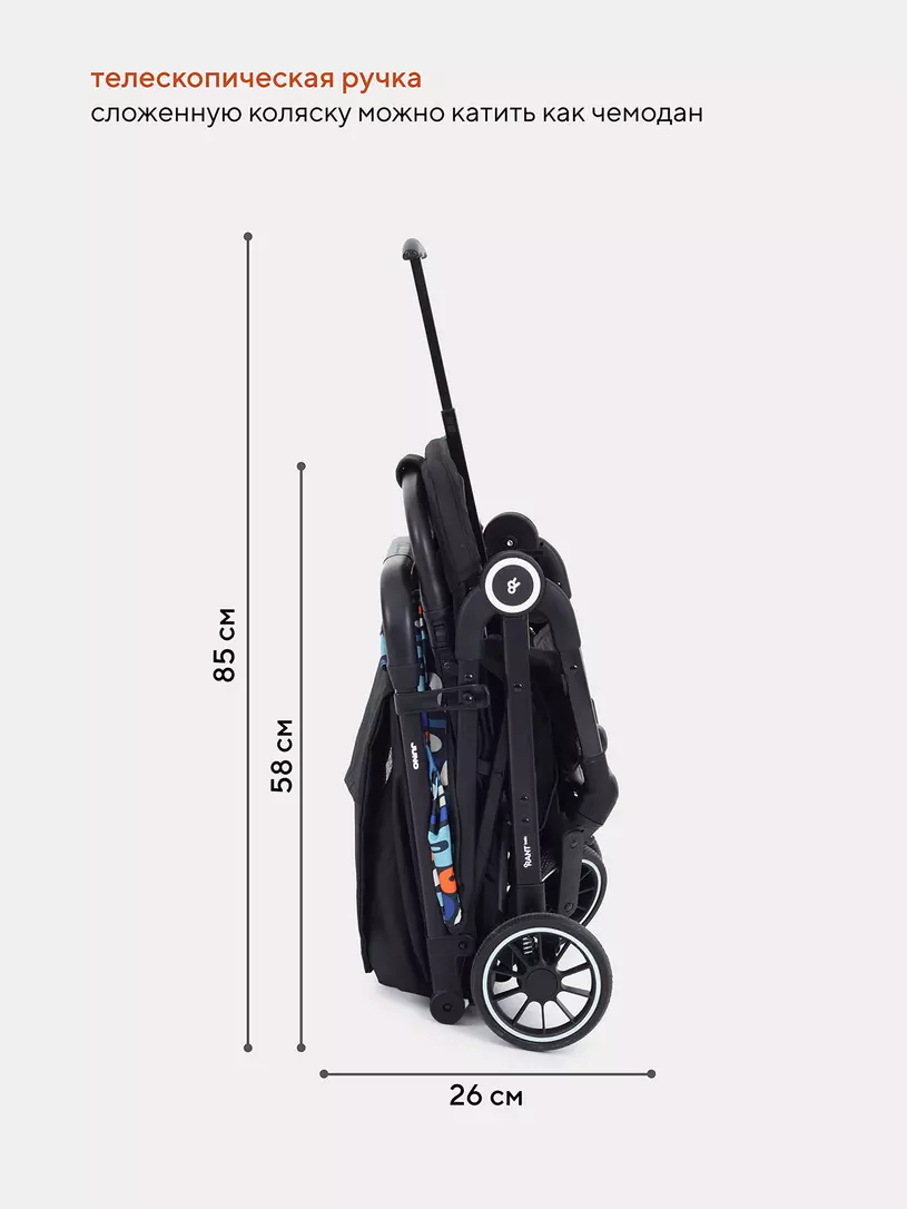 - сложенную коляску можно катить как чемодан за специальную телескопическую ручку