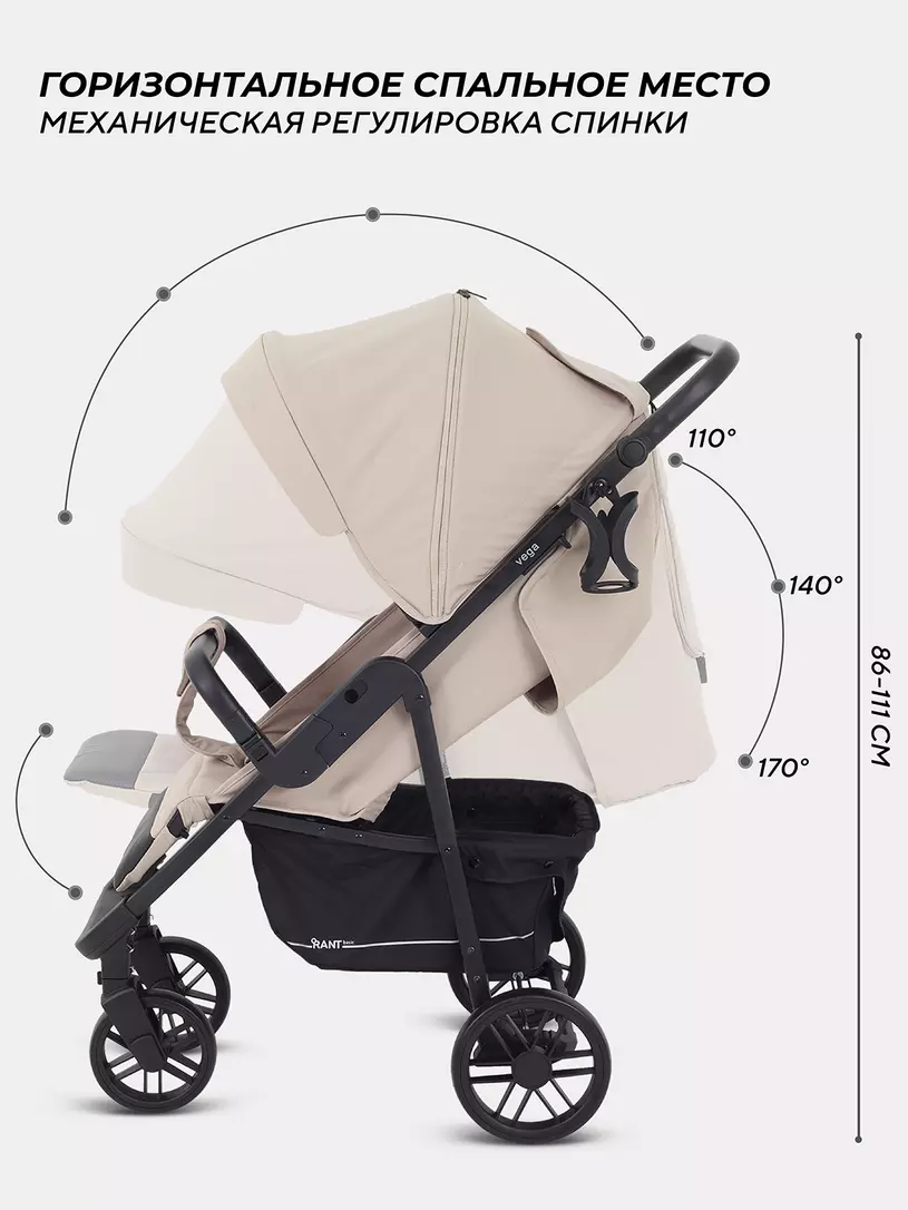 Трендовые цвета и внимание к деталям выгодно выделяют эту детскую прогулочную коляску. RANT BASIC VEGA покорит вас: вместительной корзиной; подножкой, обшитой экокожей (теперь чехол, который испачкают детские ботиночки, достаточно протереть); множеством регулировок (капюшон, спинка, подножка, ручка).