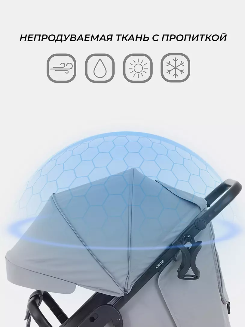 - регулируемый капюшон со скрытой секцией полностью укроет ребенка от солнца, осадков и ветра