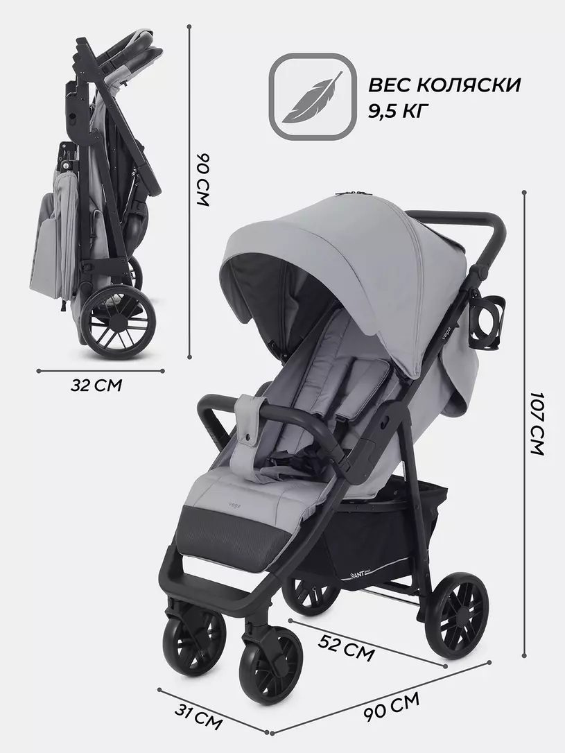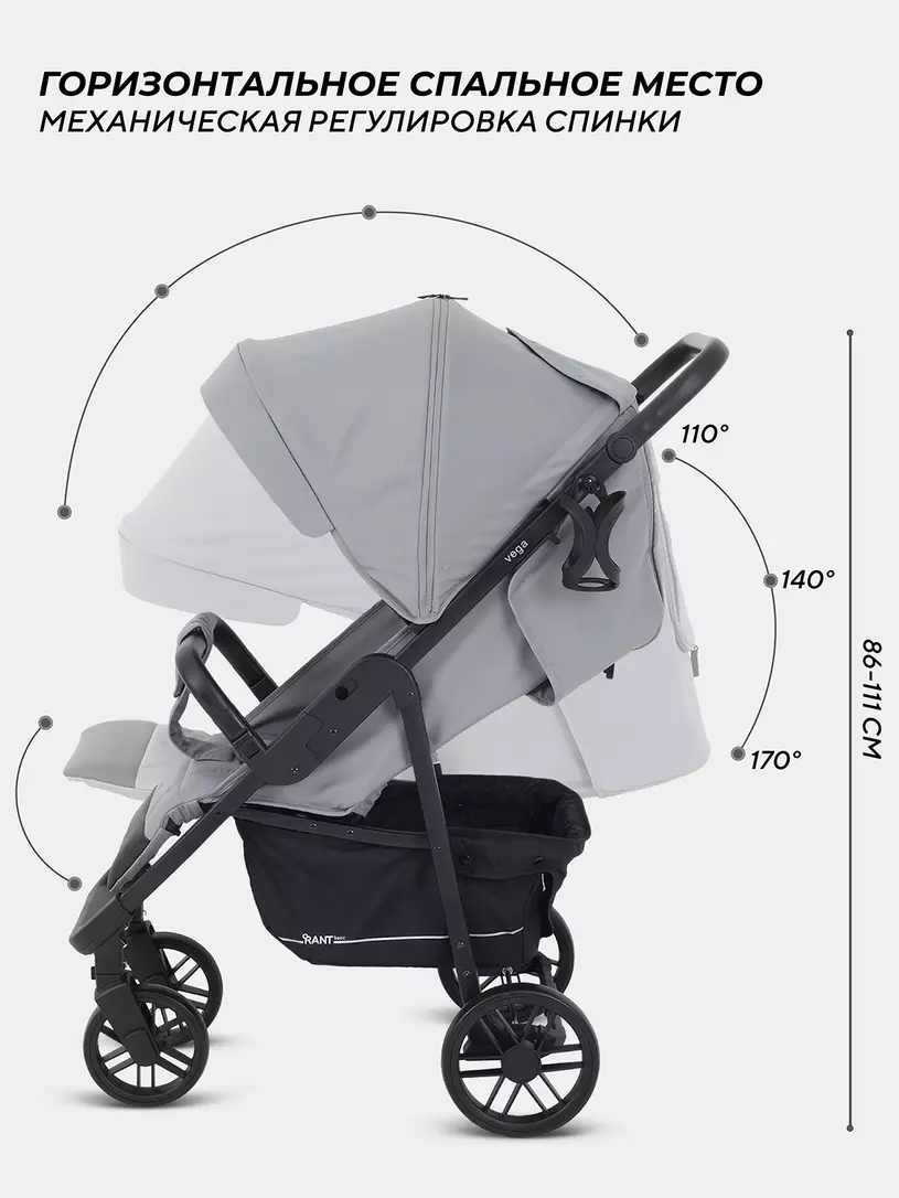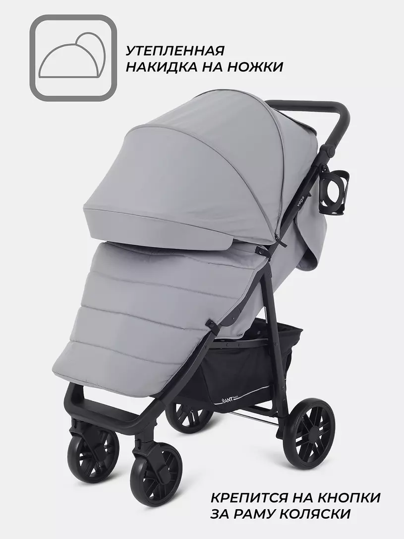 Трендовые цвета и внимание к деталям выгодно выделяют эту детскую прогулочную коляску. RANT BASIC VEGA покорит вас: вместительной корзиной; подножкой, обшитой экокожей (теперь чехол, который испачкают детские ботиночки, достаточно протереть); множеством регулировок (капюшон, спинка, подножка, ручка).