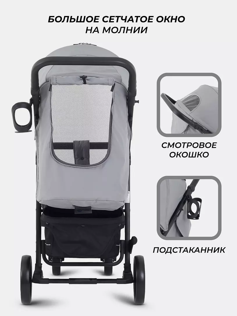 - для знойных дней изголовье коляски дополнено большим вентиляционным окном на молнии