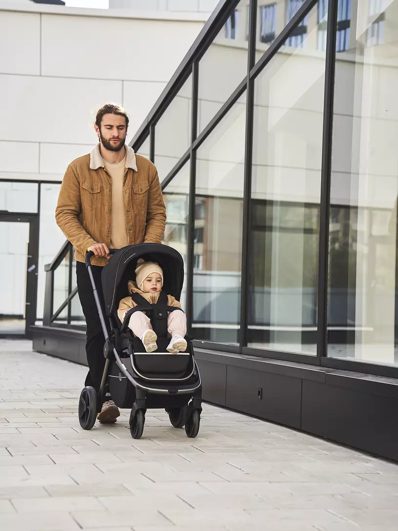 - капюшон прогулочного блока регулируется по высоте, чтобы ребенку любого роста было комфортно