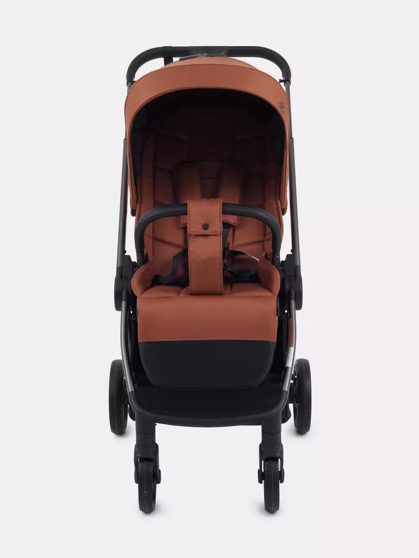 - колеса, выполненные из полиуретана, и амортизация как на передних, так и на задних колесах дарят коляске мягкий ход и абсолютную проходимость