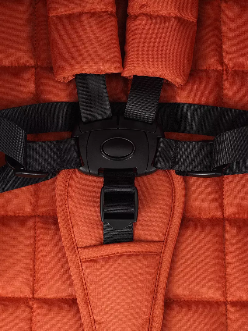 - надежный пятиточечный ремень безопасности и удобный разделитель ножек