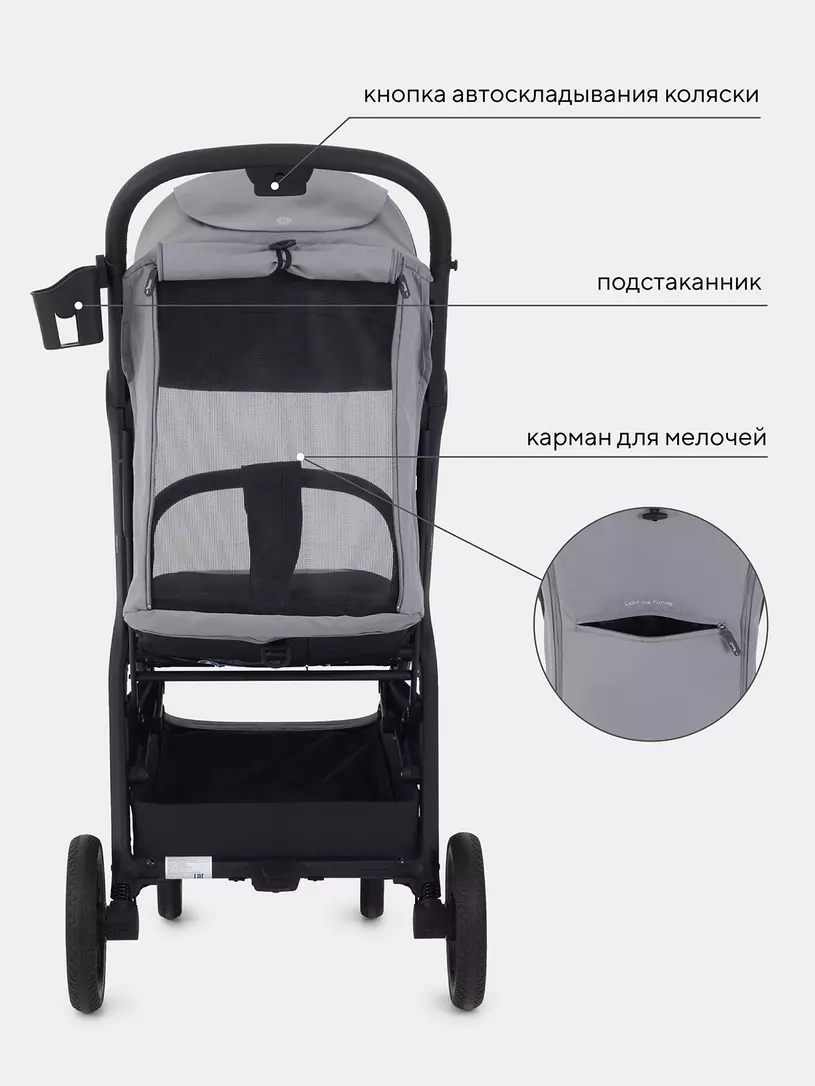 - регулируемый капюшон со скрытой секцией полностью укроет ребенка от солнца и ненастной погоды